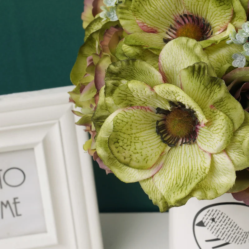 6 Pcs Beautiful Peony Poppy Artificial Silk Flowers White Bouquet Vase For Home Party Autumn Wedding Diy Decoration Fake Flowers