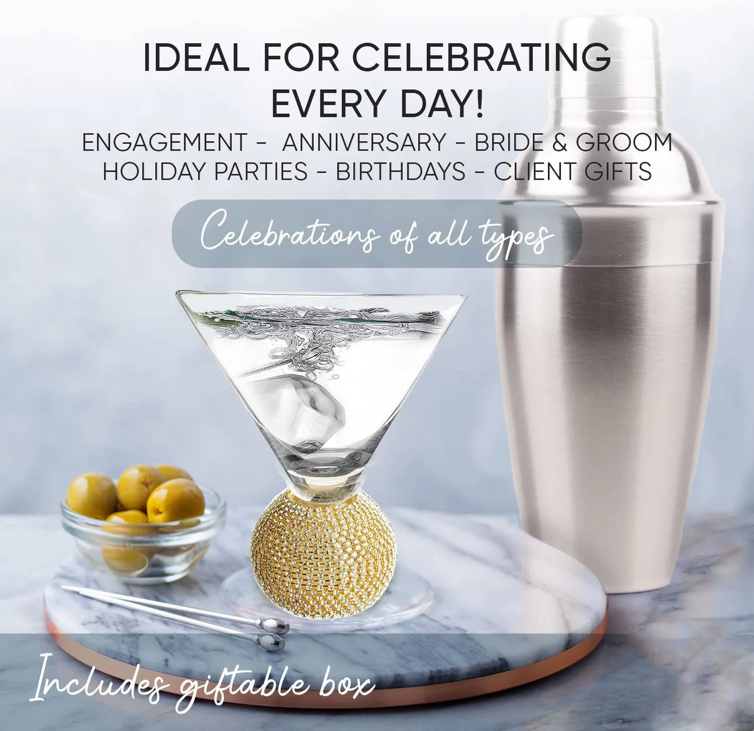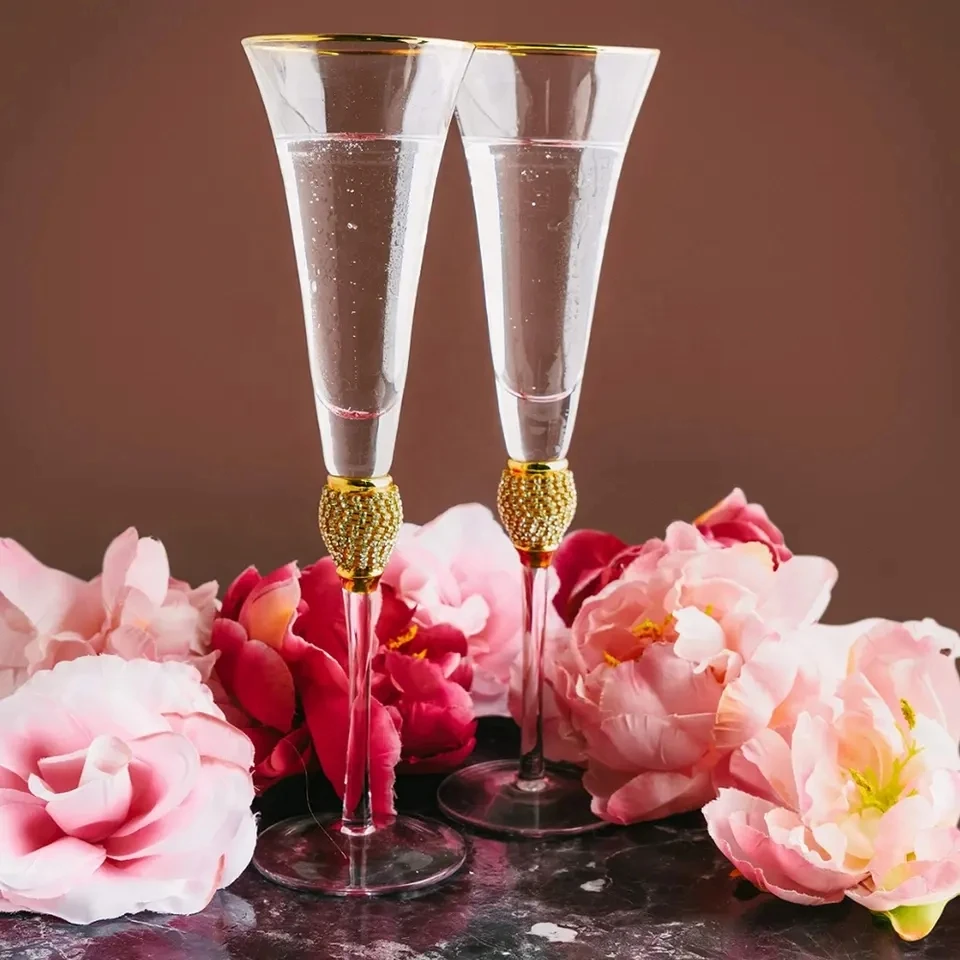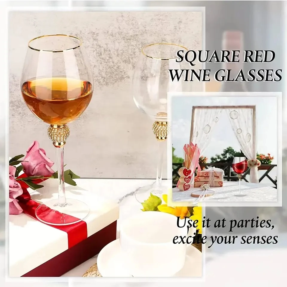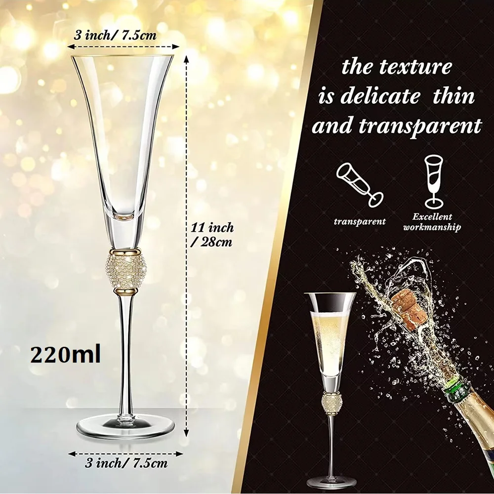 2Pcs Crystal Gold Rimmed Wine Glasses Set Elegant Rhinestone Diamond Decorative Long Stem Champagne Flutes Cocktail Glass Gifts