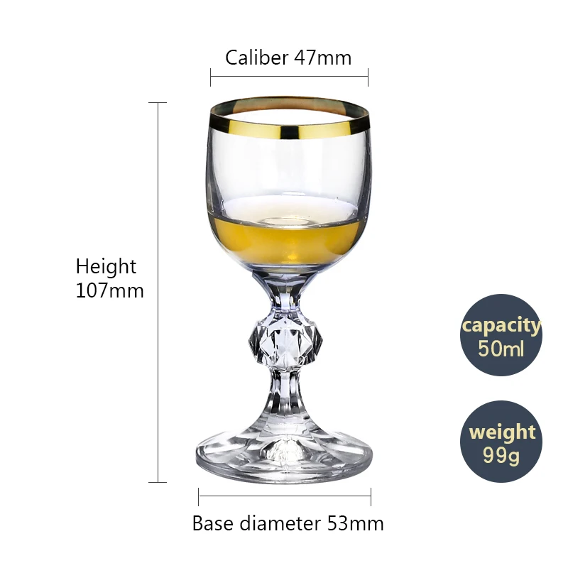 50ml tall glass Gold decoration Creative Crystal glass Brandy glass wine glass Restaurant bar wine set