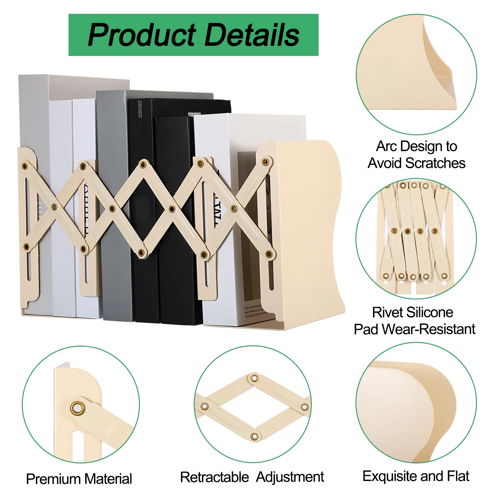 Adjustable Bookend Metal Book End for Shelves Heavy Book Expandable Magazine File Organizer Holder Retractable Bookends for Book