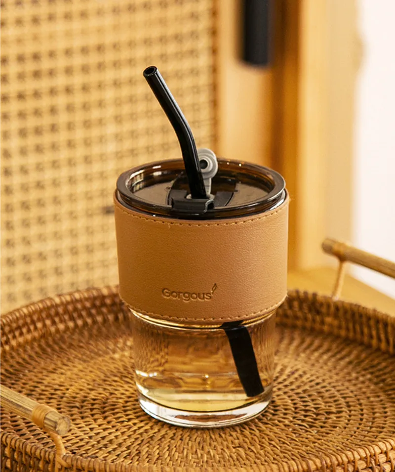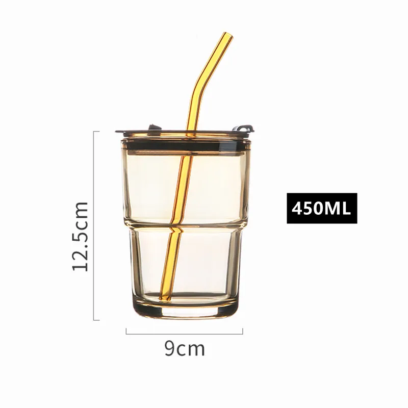 450ml Classic Glass Coffee Mug With Lid Tea Milk Cups With Straw Drinkware Nice Gifts