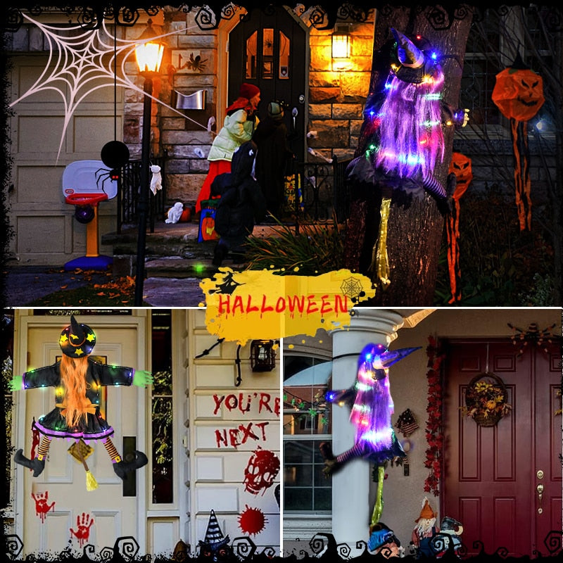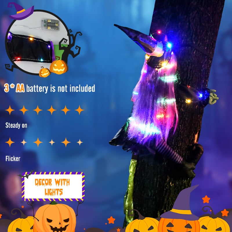 【Kreativt design og lys op】 Vi tilføjede farvede lysstrimler til den traditionelle heksetræ dekoration, så det også kan dekorere din gård på Halloween -aften.