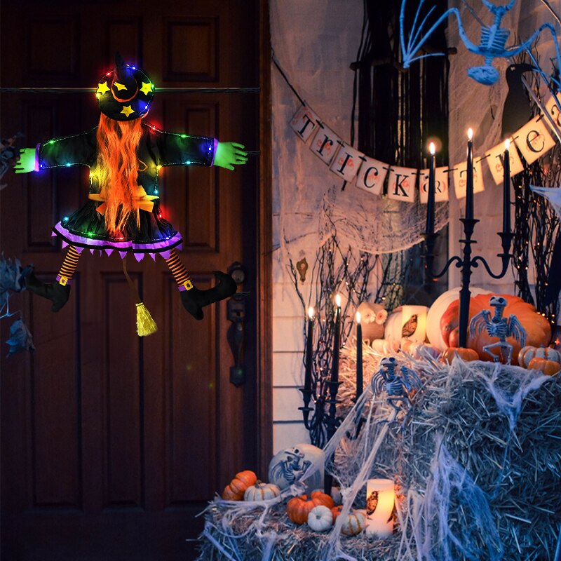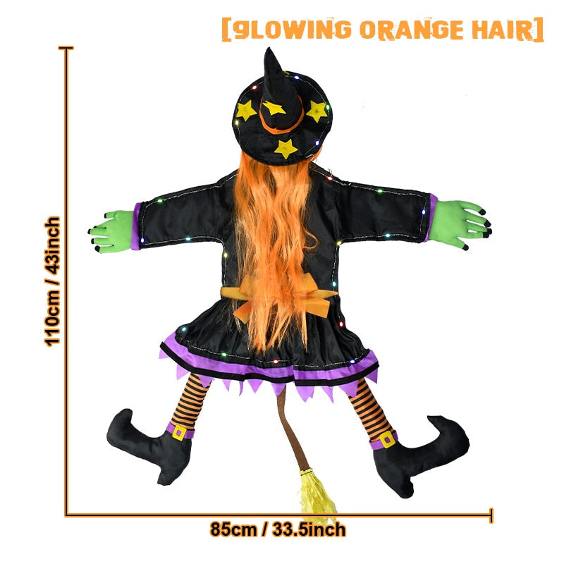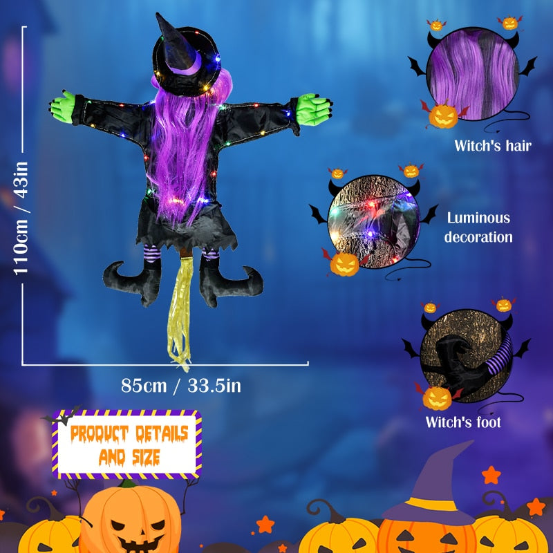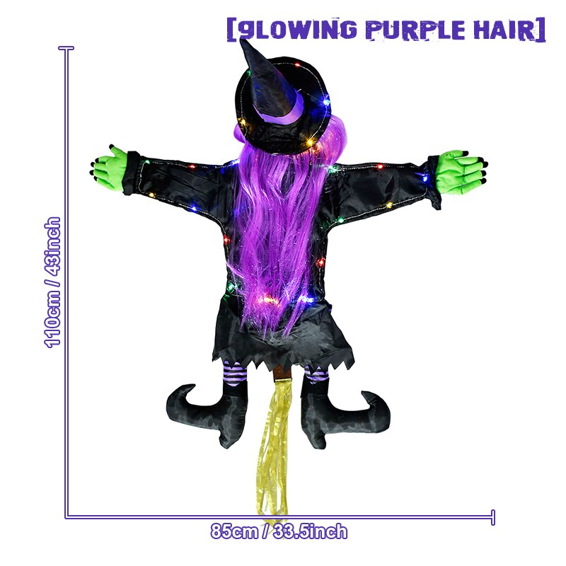 【Skræmmende hekser glødende Halloween -dekorationer】 Med lyse hår, grønne hænder, sort strømpe og farverige lysbjælker over hele kroppen for dit hus at underholde dine venner, naboer og gæster
