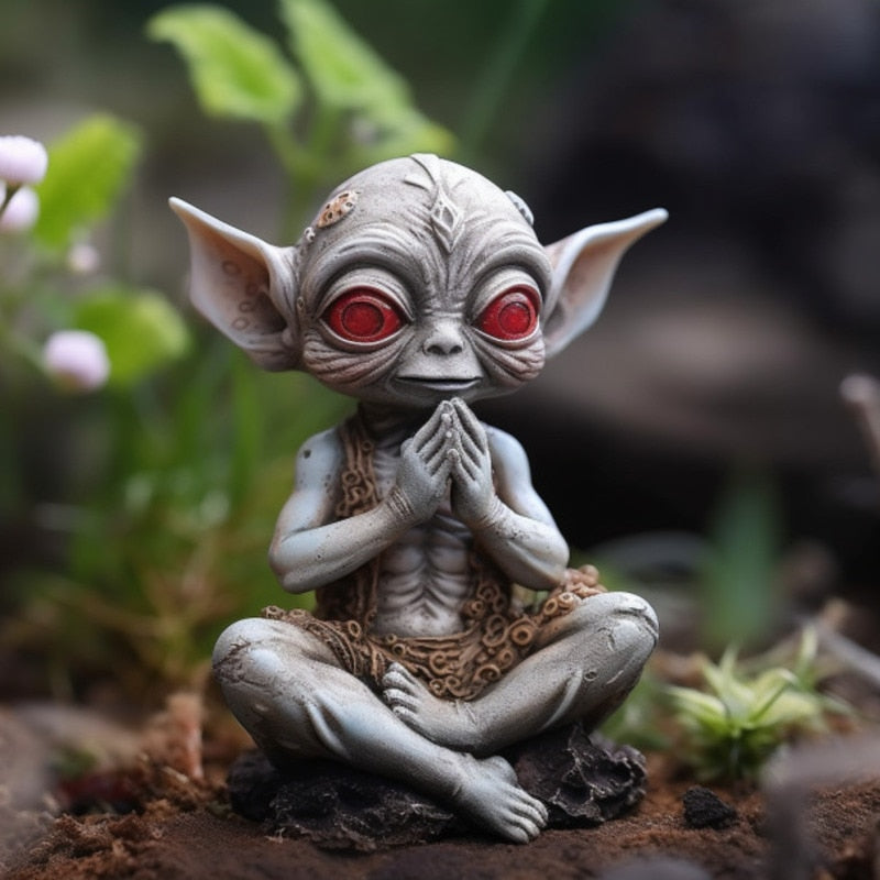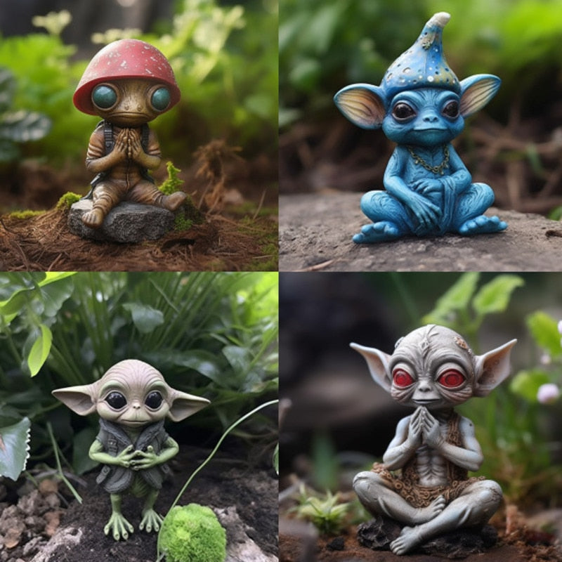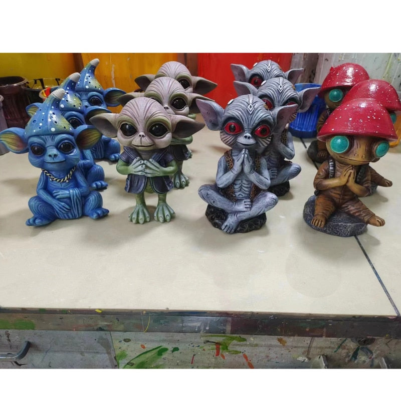 2023 Ny Alien figurharpiks Fantasy Crafts Garden Halloween Dekoration Aliens Statue Model Doll Elf Ornamenter Børn Gaver