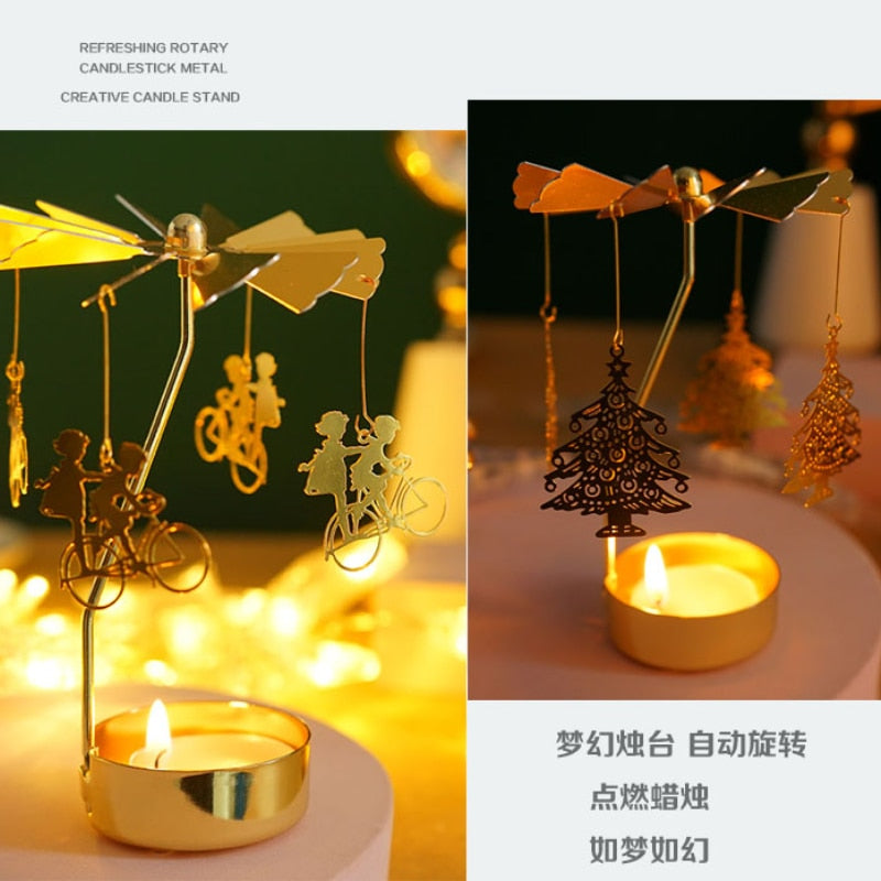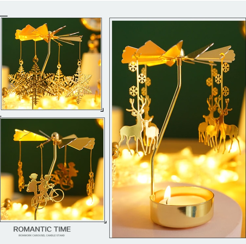 Candleholder vedtager termisk rotationsteknologi. Efter at have tændt lyset, roterer det hængende stykke ovenfor langsomt, hvilket er nyt og unikt.