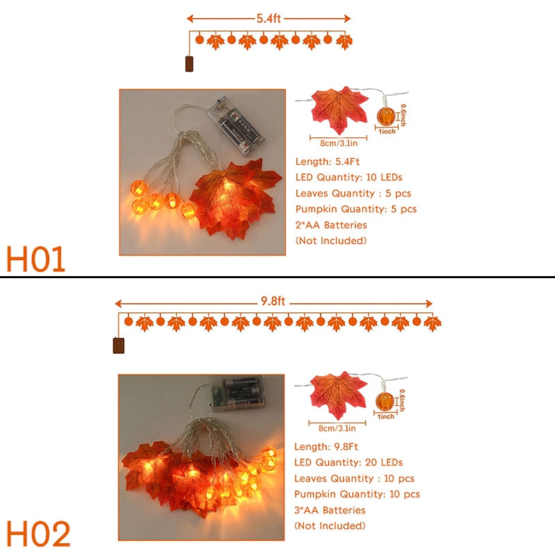 Ahorn blade streng lys blad krans streng lys batteri drevet efterår Thanksgiving halloween hjem pejs dør dekora