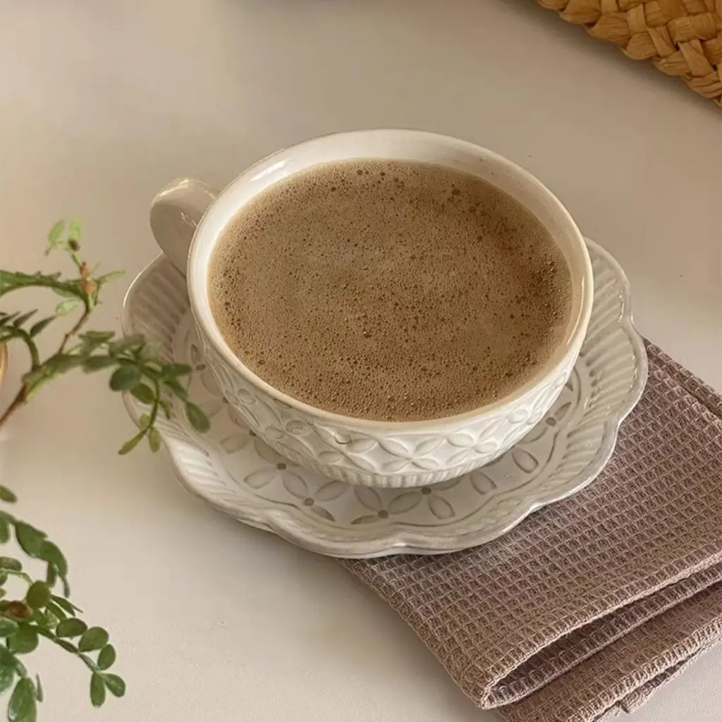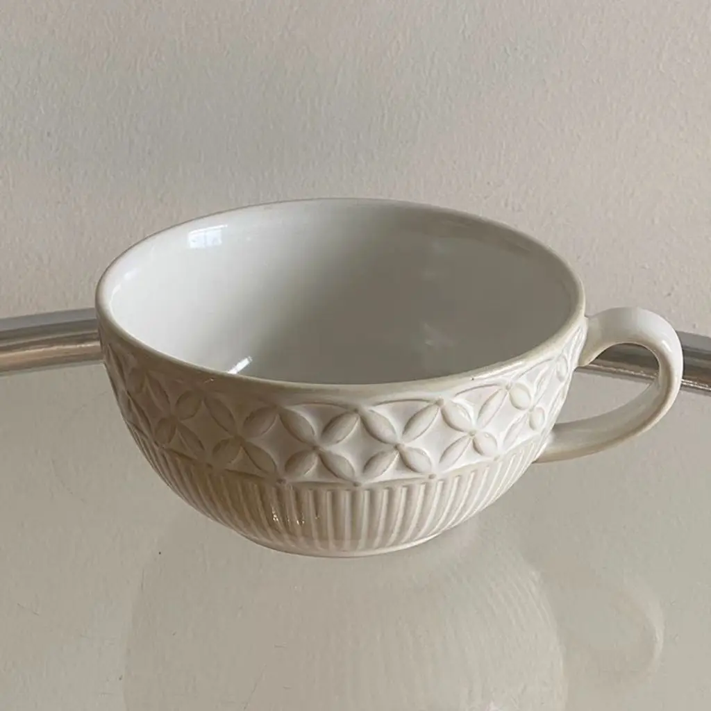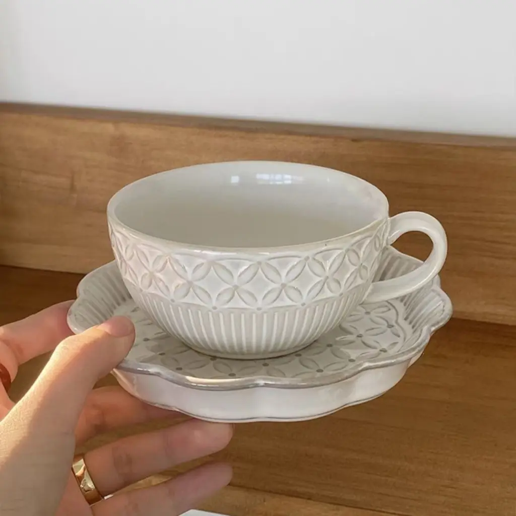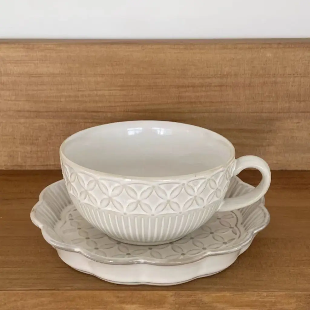 Embossed coffee cup and saucer, retro ceramic cup, dessert saucer, afternoon tea cup, latte cup, breakfast cup, dessert saucer