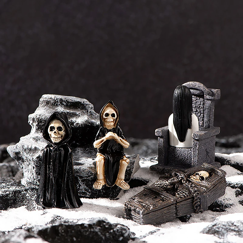 Halloween Resin Ghost Skull Tombstone Miniature Figurines Dollhouse Accessories Halloween Home Table Flower Pot Decor