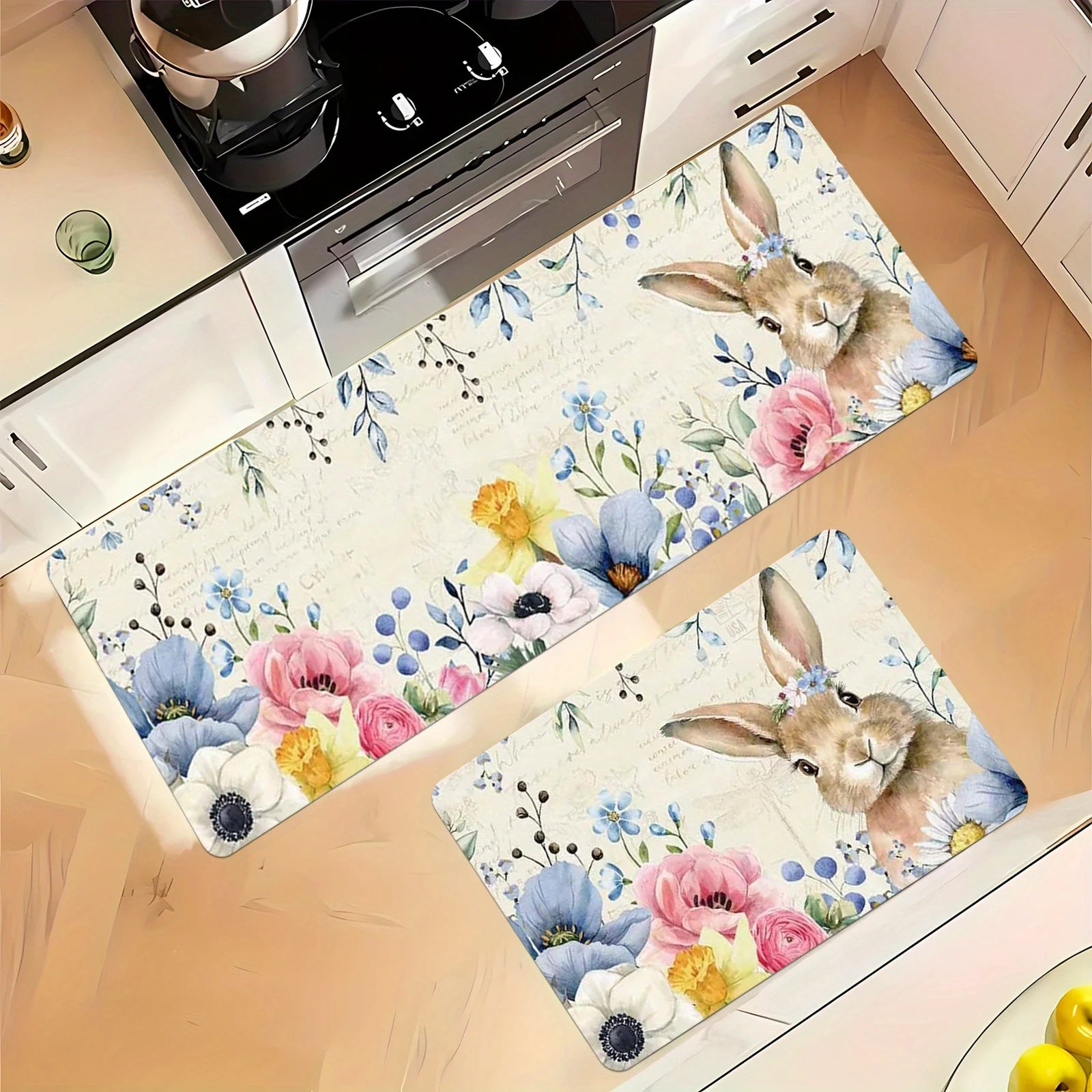 Happy Easter Spring Rabbit Flowers Kitchen Floormats Living Room Balcony Hallway Entrance Rugs Bathroom Toilet Non-slip Door Mat