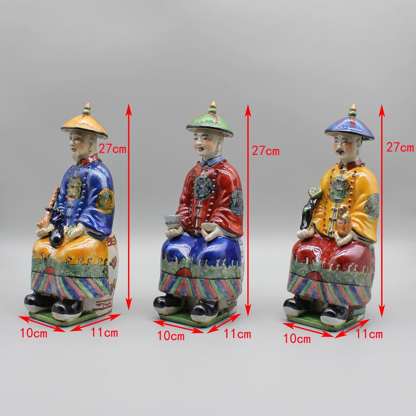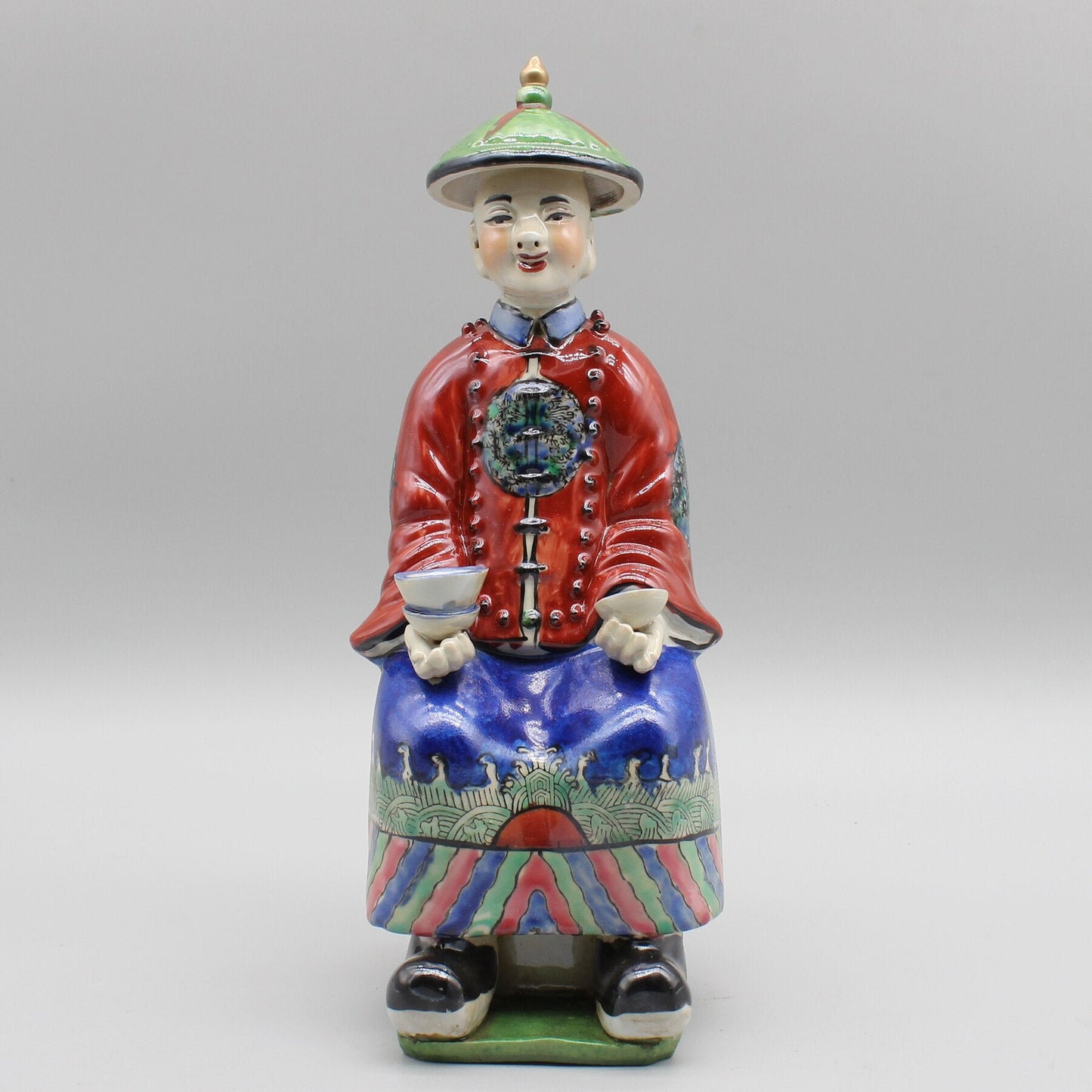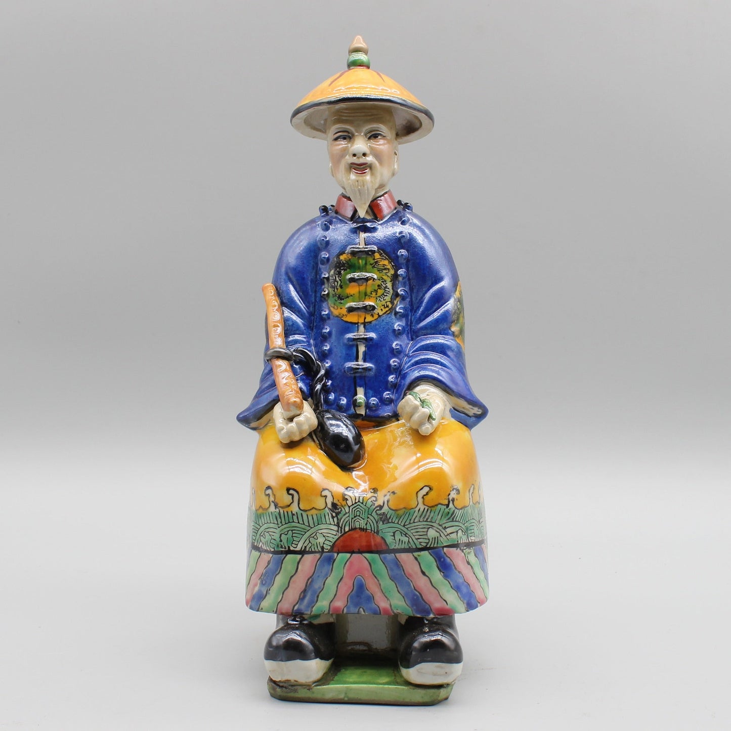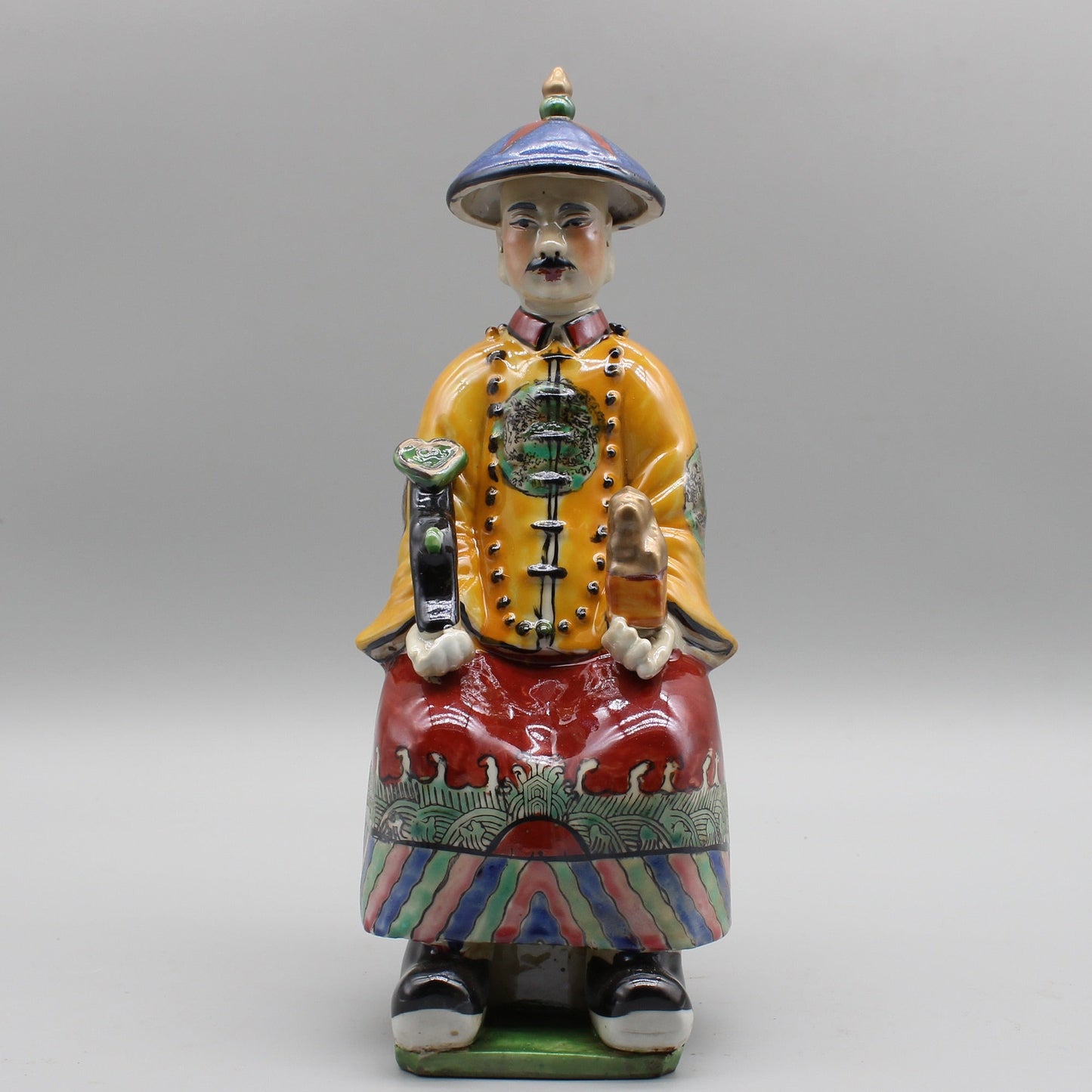 Keramisk kinesisk kejserstatue, håndmalet keramisk figur, farverigt porcelæn, boligindretning