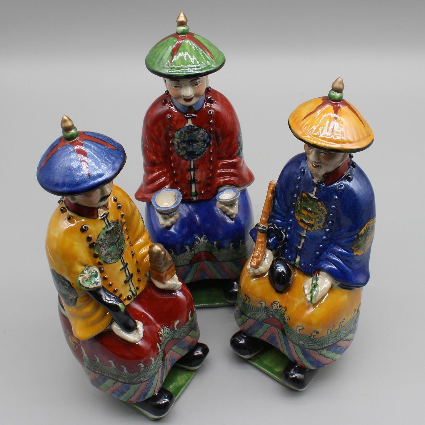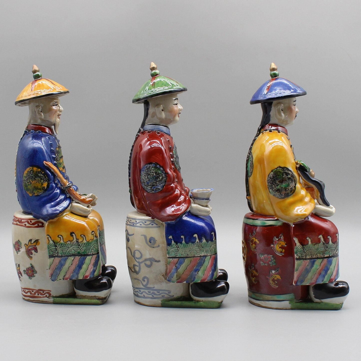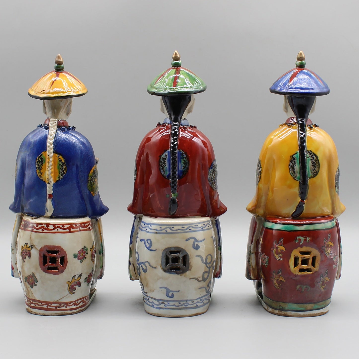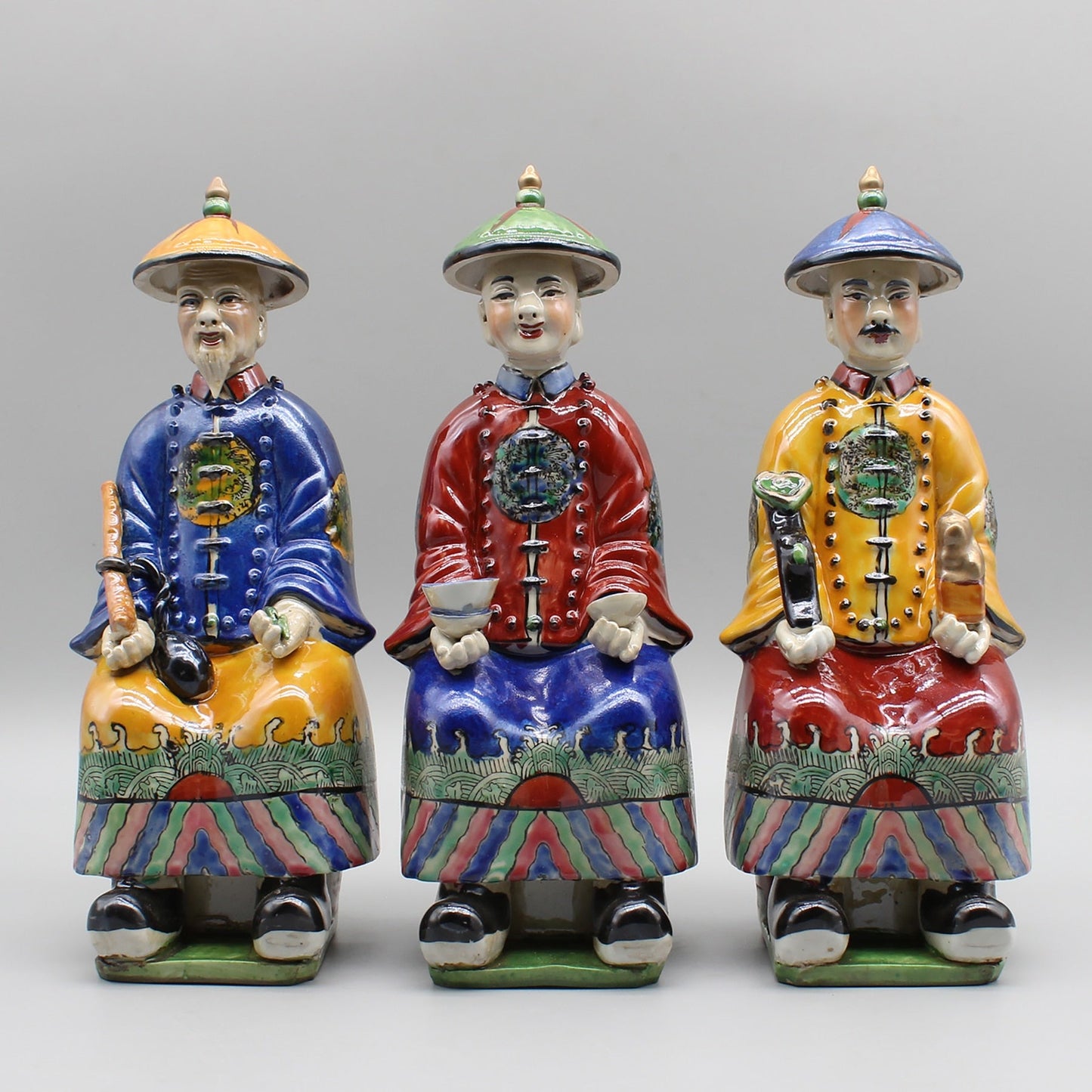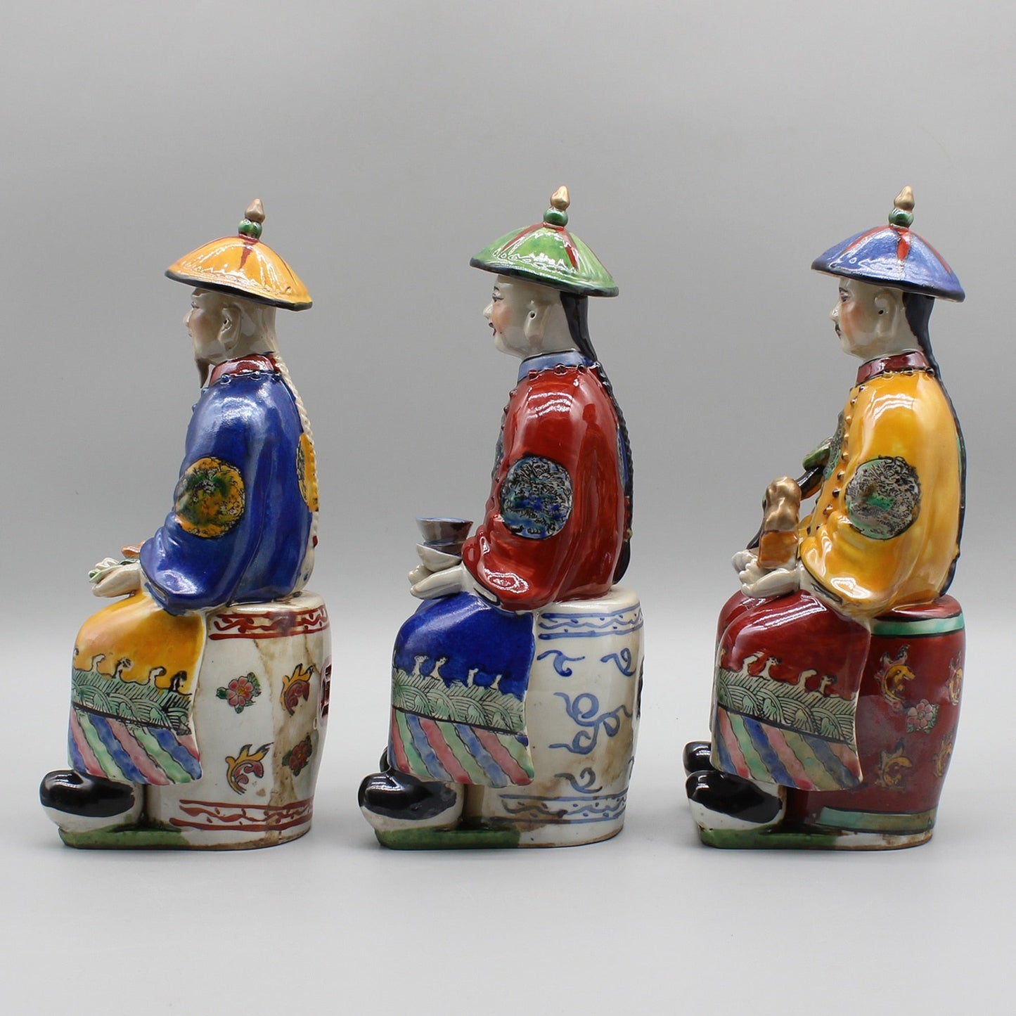 Keramisk kinesisk kejserstatue, håndmalet keramisk figur, farverigt porcelæn, boligindretning