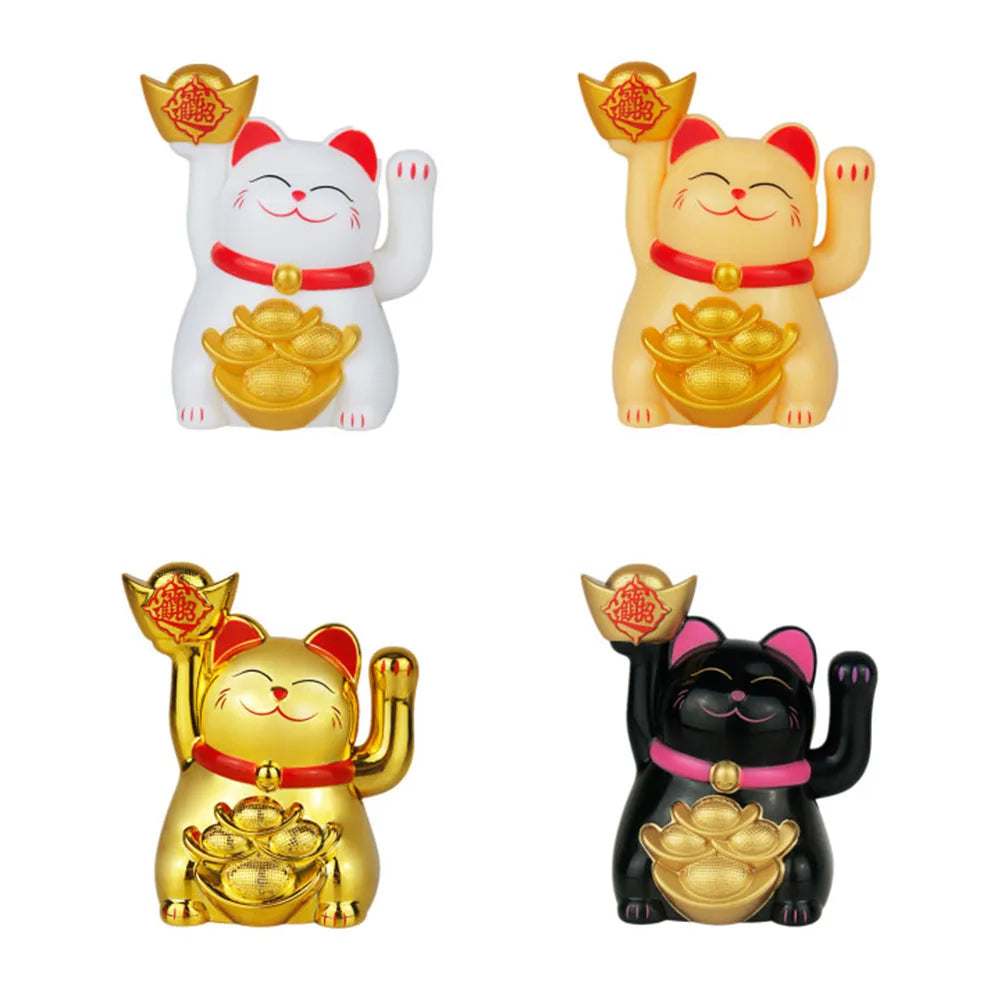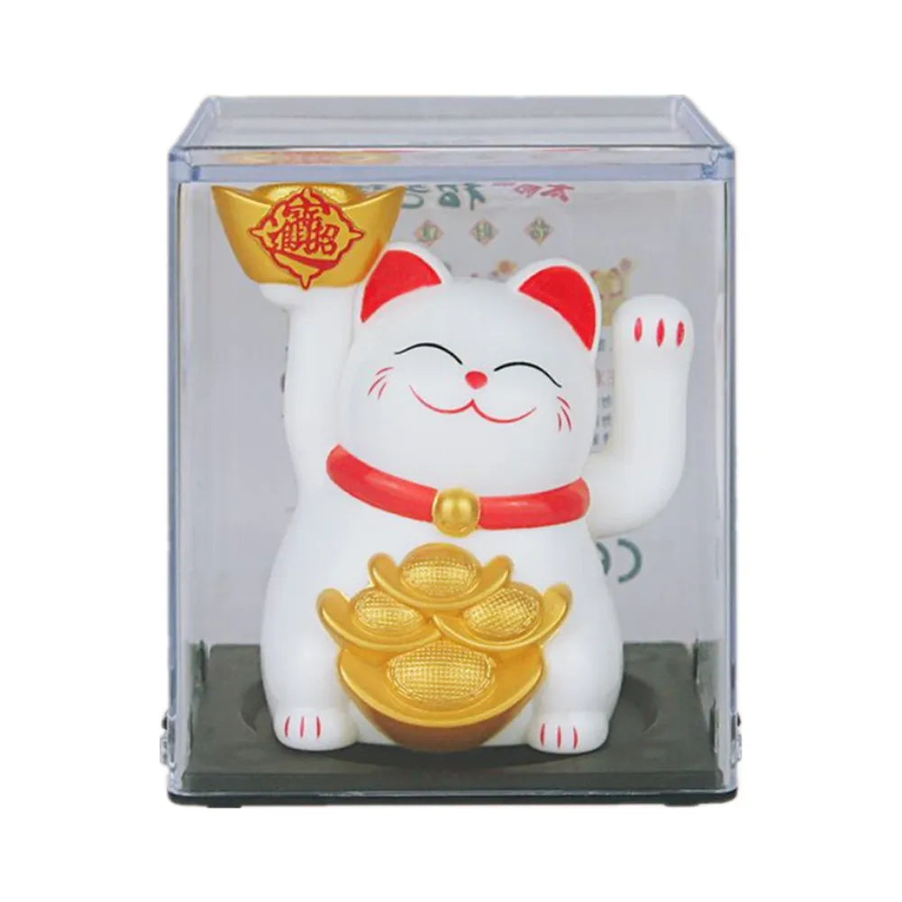 Solar Powered Maneki Neko Lucky Cat Welcoming Chinese Lucky Cat Waving Hand Beckoning Fortune Cat Figurines For Home Decor