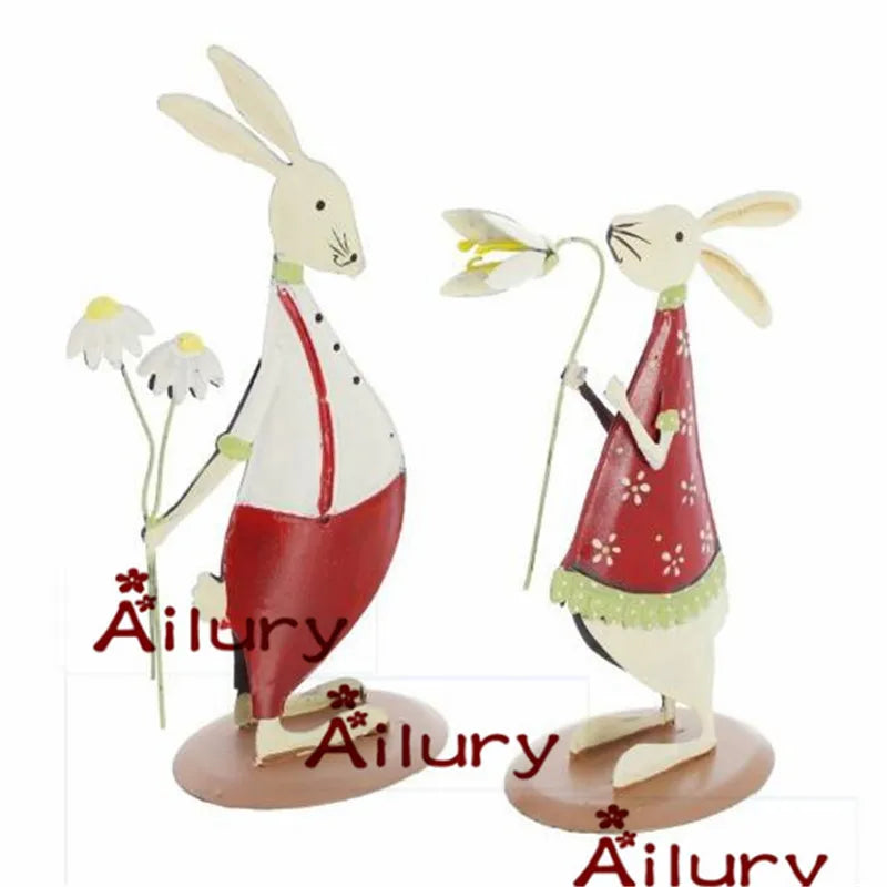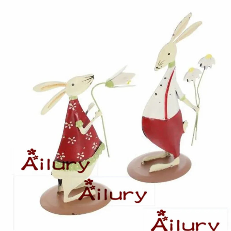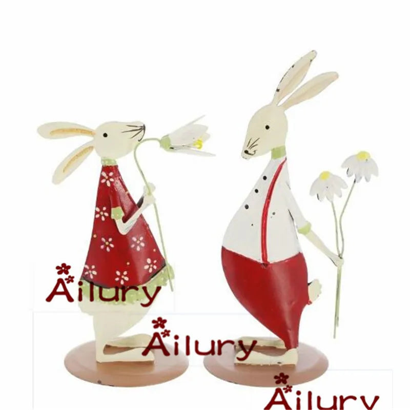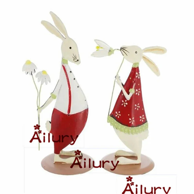 2Pcs,Cute Country Style Red Tin Bunny Ornaments Two-Sided Shy Rabbit Christmas Creative Presents Home Decor,Desktop Wedding