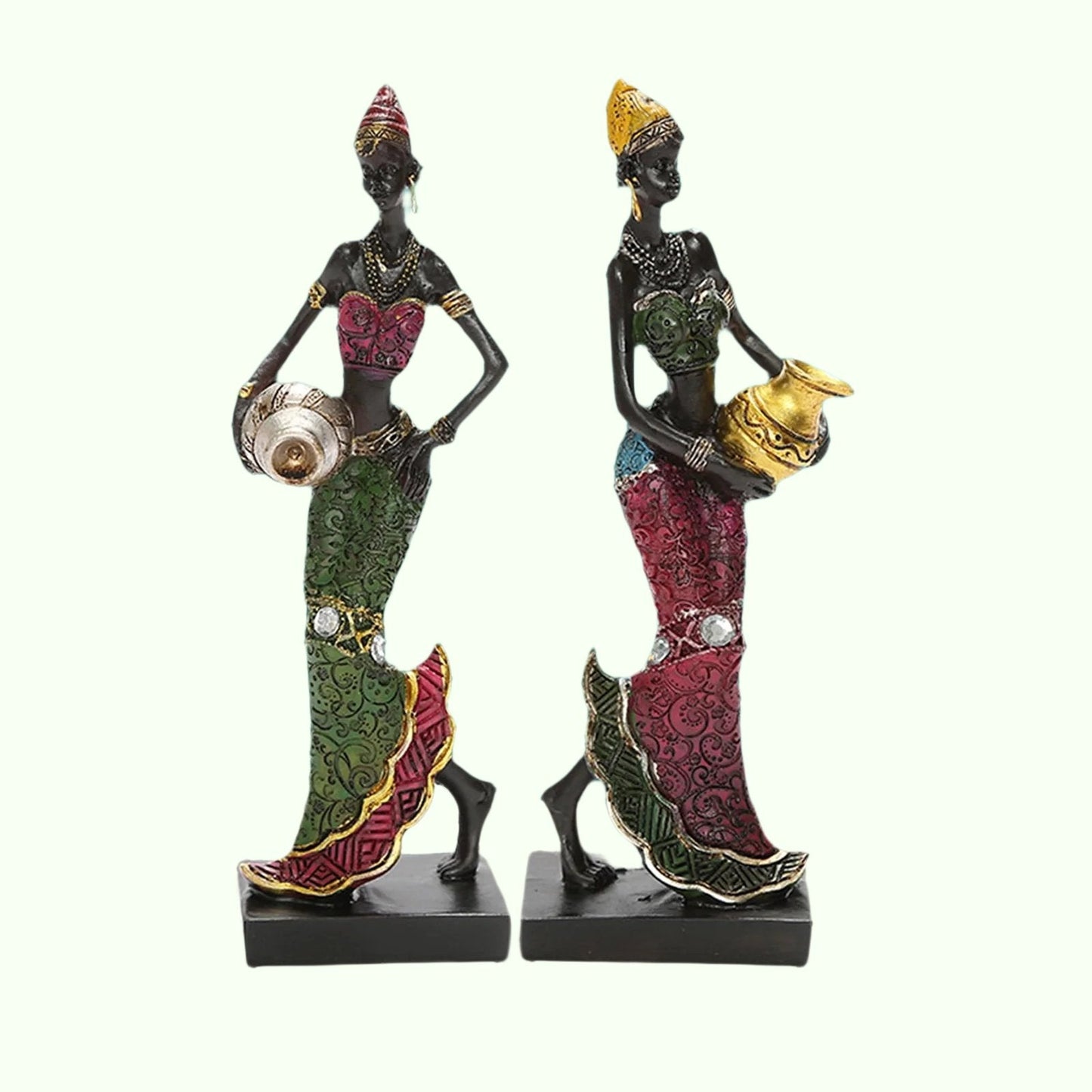 Die einzigartigen handgefertigten schwarzafrikanischen Tribal-Lady-Figuren aus bemaltem Kunstharz. Vintage-Kunstdesign, passt gut zu den meisten Inneneinrichtungen.