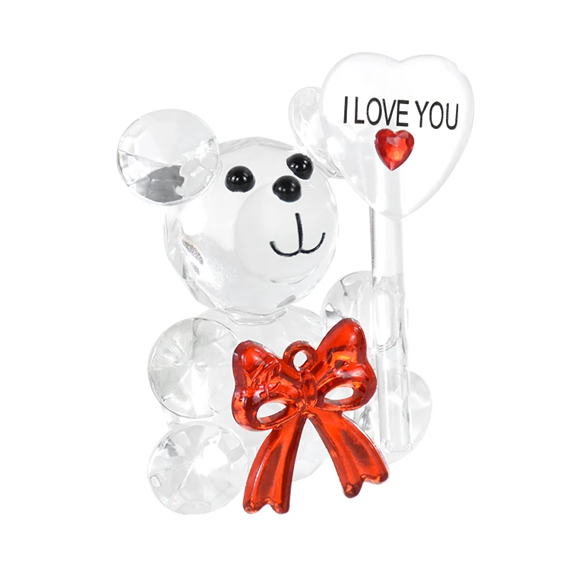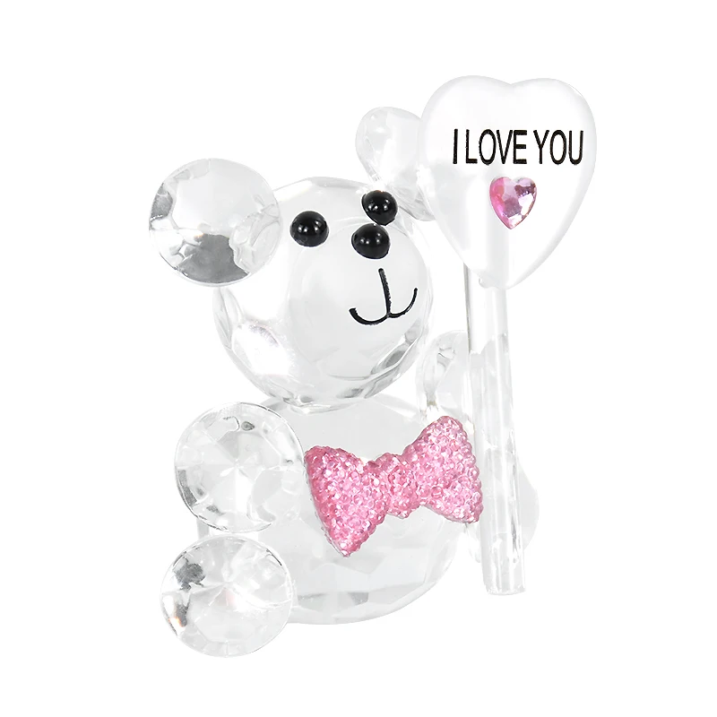 Cute Bear Crystal Figurine with Love Heart Bow Ornament Glass Animal Miniature Romantic Gifts Valentine's Day Wedding Home Decor