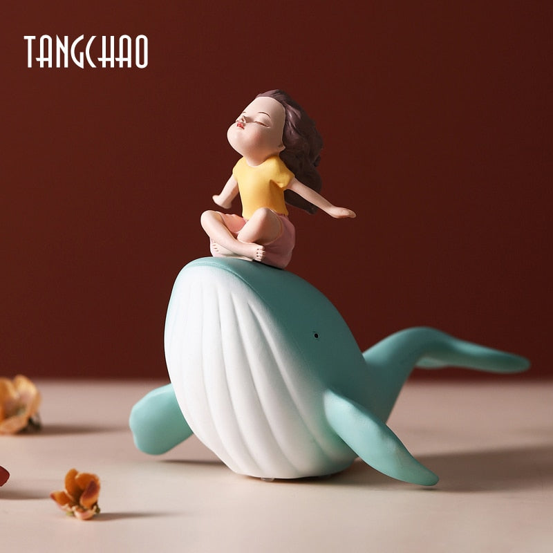 Figur Wal Mädchen Statue Nordic Harz Wohnkultur Moderne Figuren Für Innen Wohnzimmer Büro Ästhetische Zimmer Dekor Geschenk