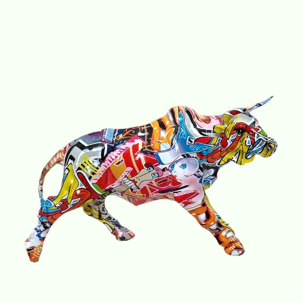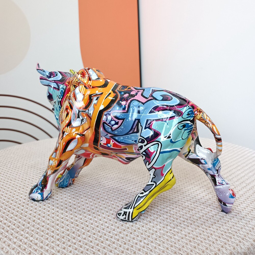 Graffiti Charging Bull Statue Harz Miami Tier Feng Shui Kunst Moderne Skulptur Home Wohnzimmer Dekoration Büro Figur Geschenk