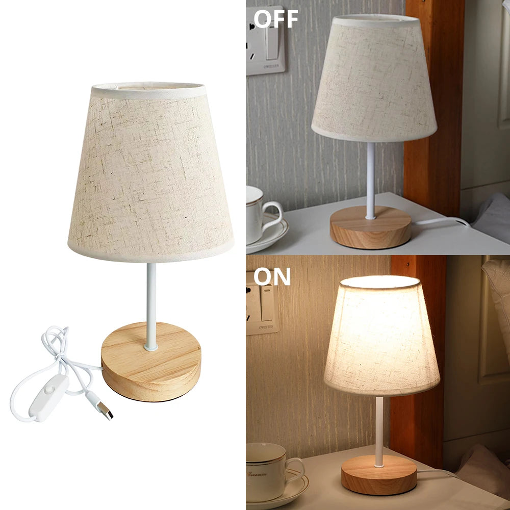 Solid Wood Cloth Nordic Decorative Table Bedroom Bedside Lamp Simple Creative Remote Control Small Night Light Energy Saving Led