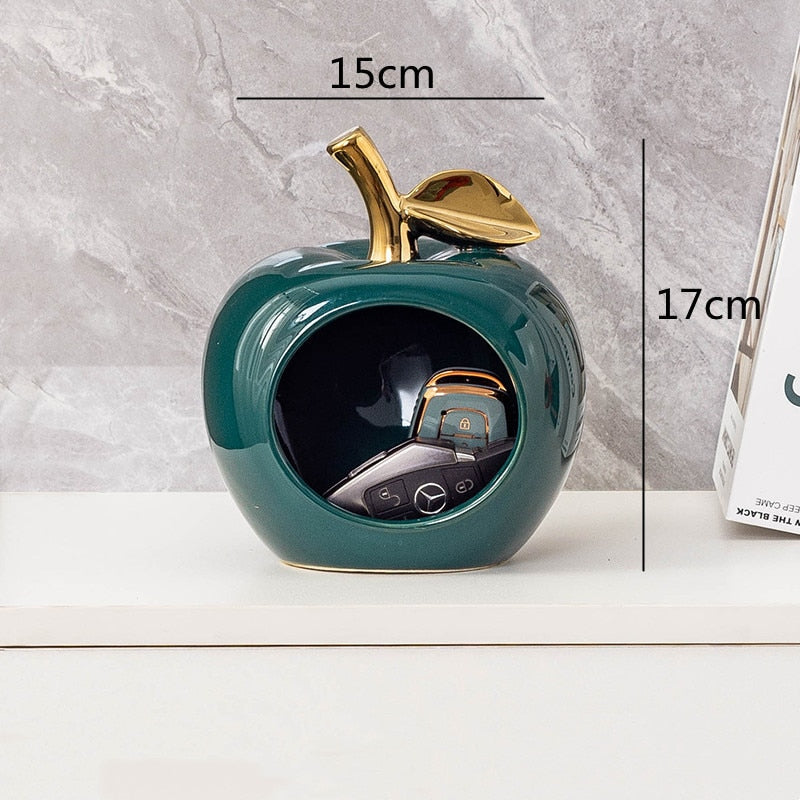 Título del producto: Apple Hollow Hollow Golden Ceramic Crafts Ornamentos de almacenamiento de escritorio Caja de almacenamiento de frasco de dulces Muebles de casas de manzana dorada