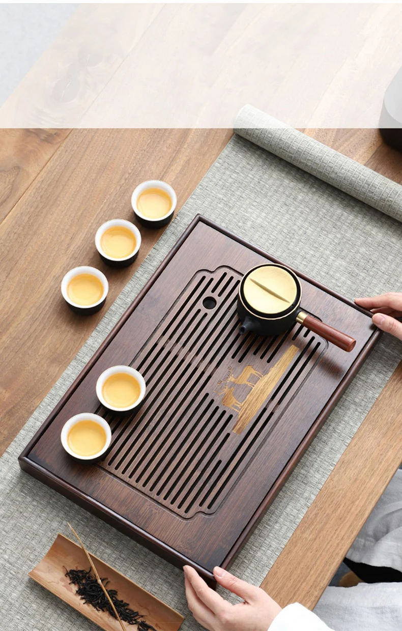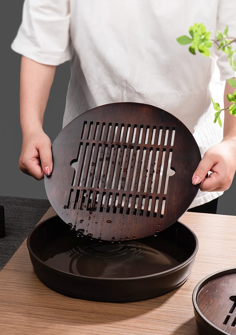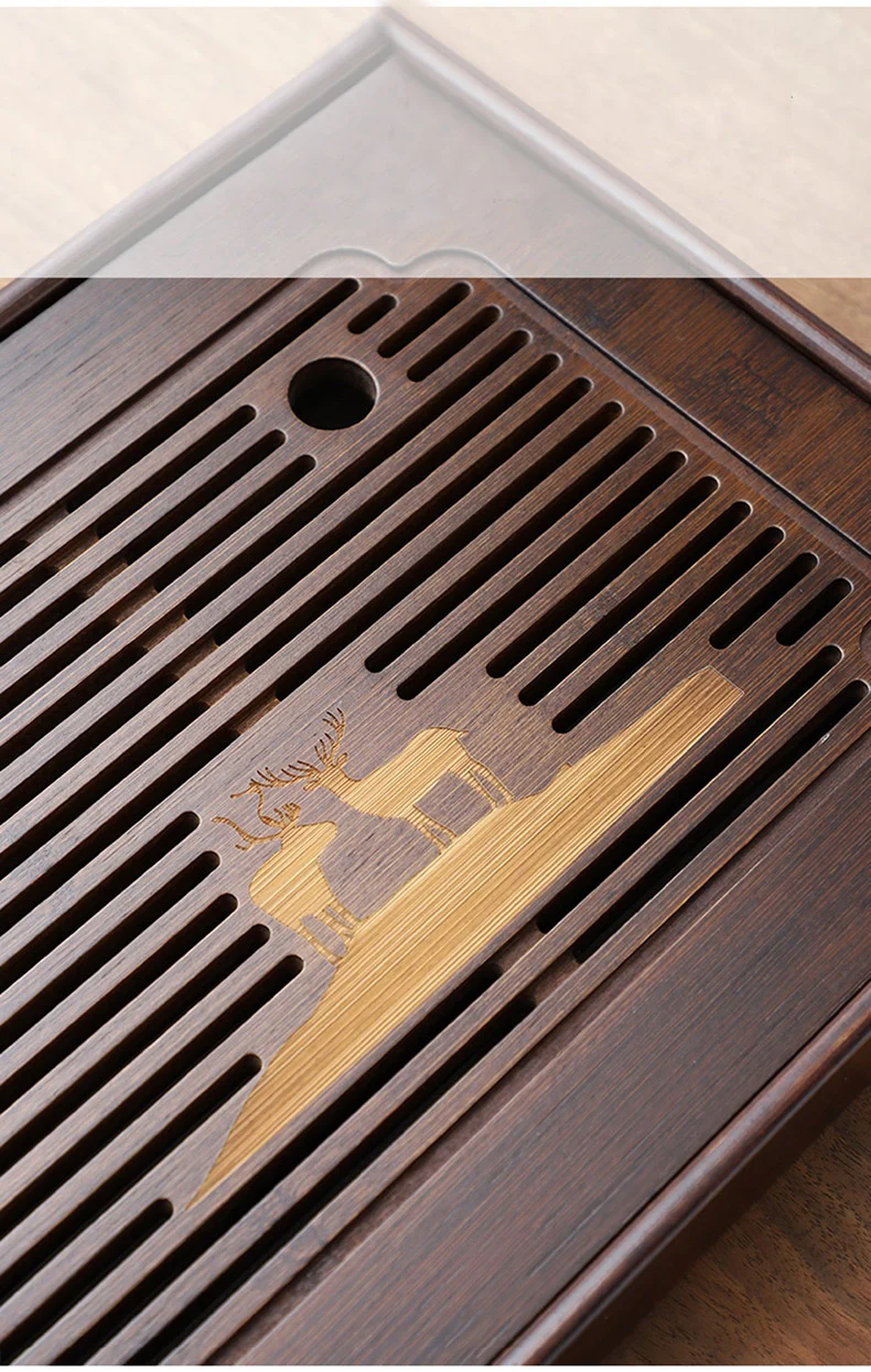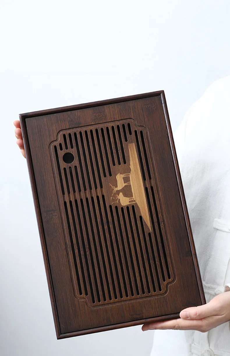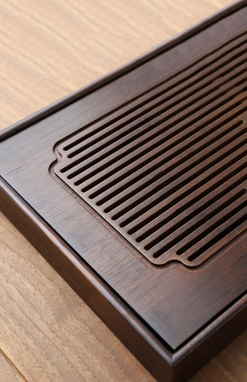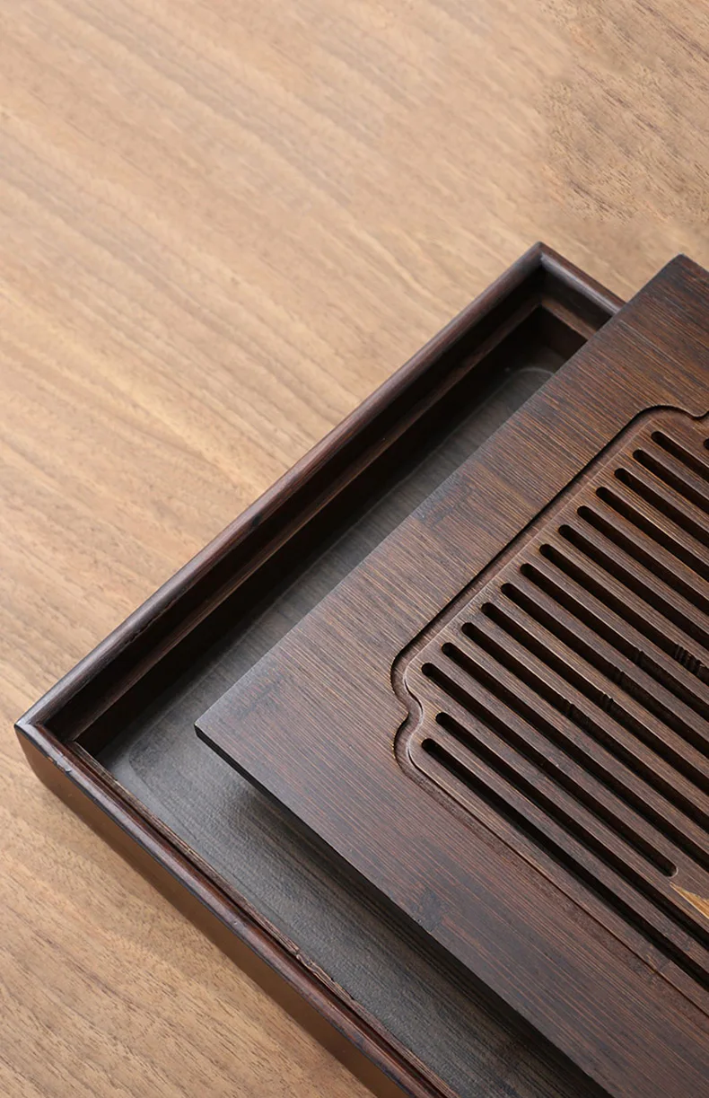 Bamboo material, there is a large capacity, grid hollow plate surface, fast drainage, to meet the needs of tea, can be used in a variety of occasions, natural texture, smooth plate surface, separate design, easy cleaning