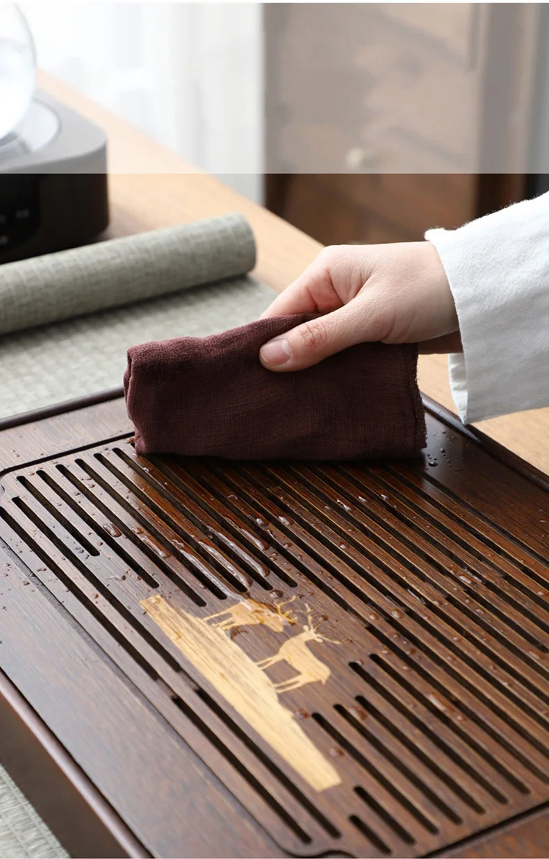 GIANXI Chinese Natural Bamboo Tea Tray Drainage Water Storage Kung Fu Tea Set Household Tray Drain Tea Board Tea Storage