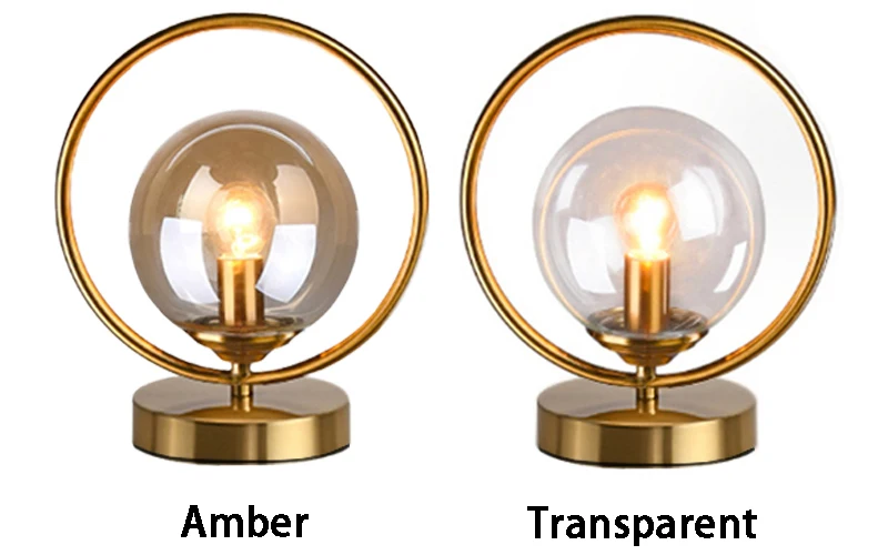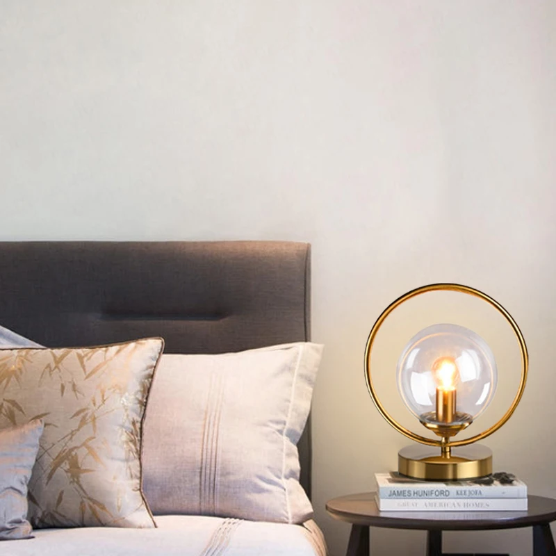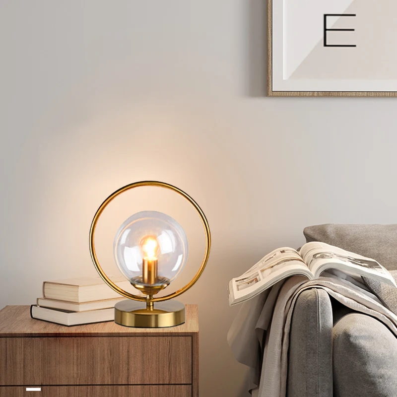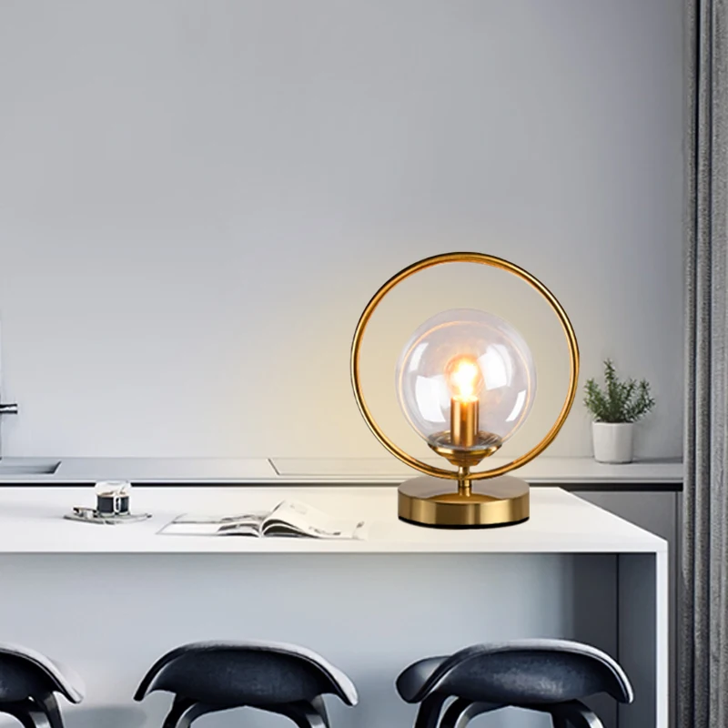 Modern LED Glass ball table lamp Brass Metal ring desk lamp decor living room bedroom bedside lighting fixture