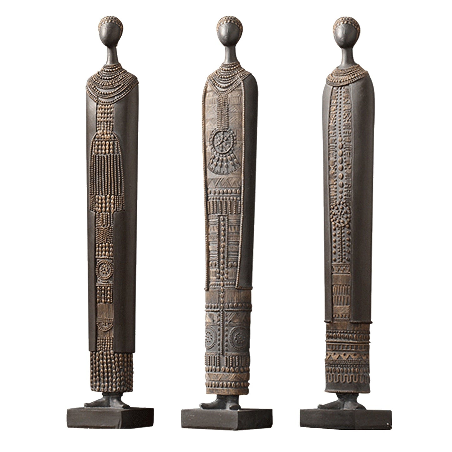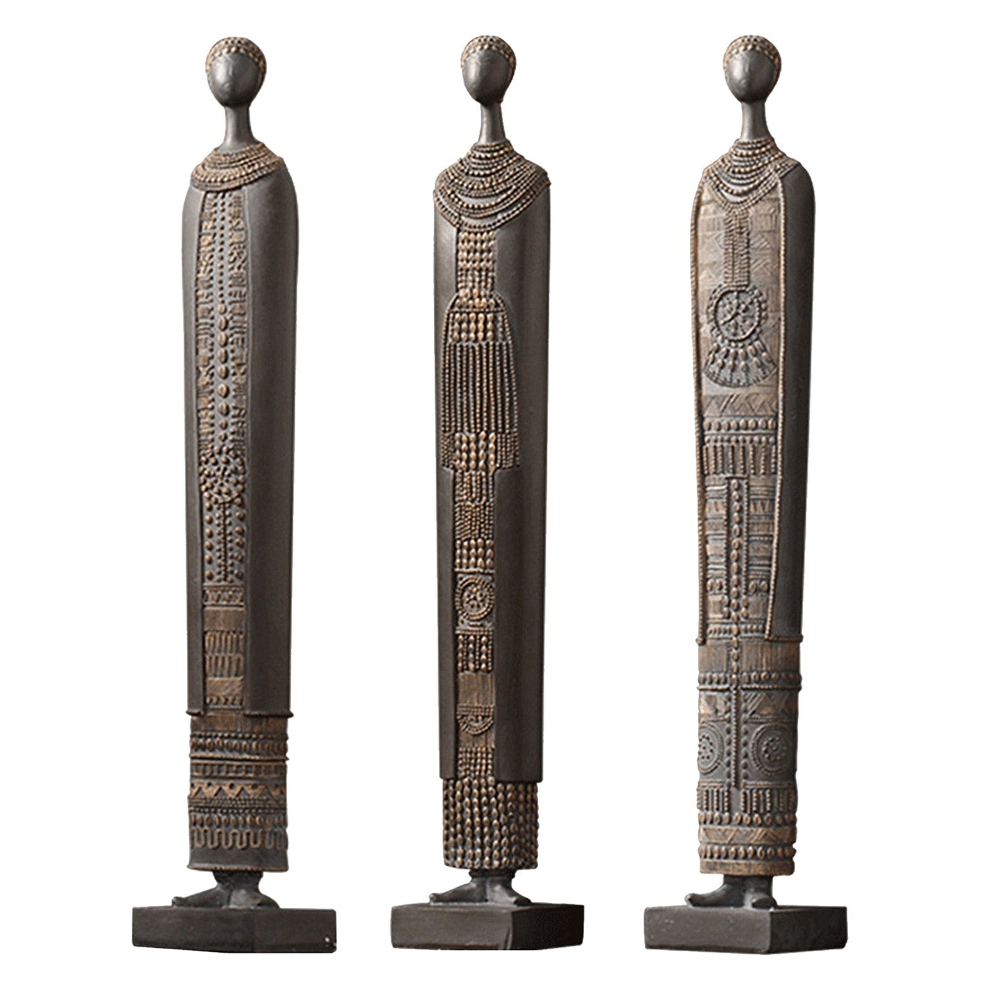 Estas figuras tribales de resina negras de resina de resina de resina de forma única y pintadas son un excelente complemento para cualquier decoración de hogar/oficina.