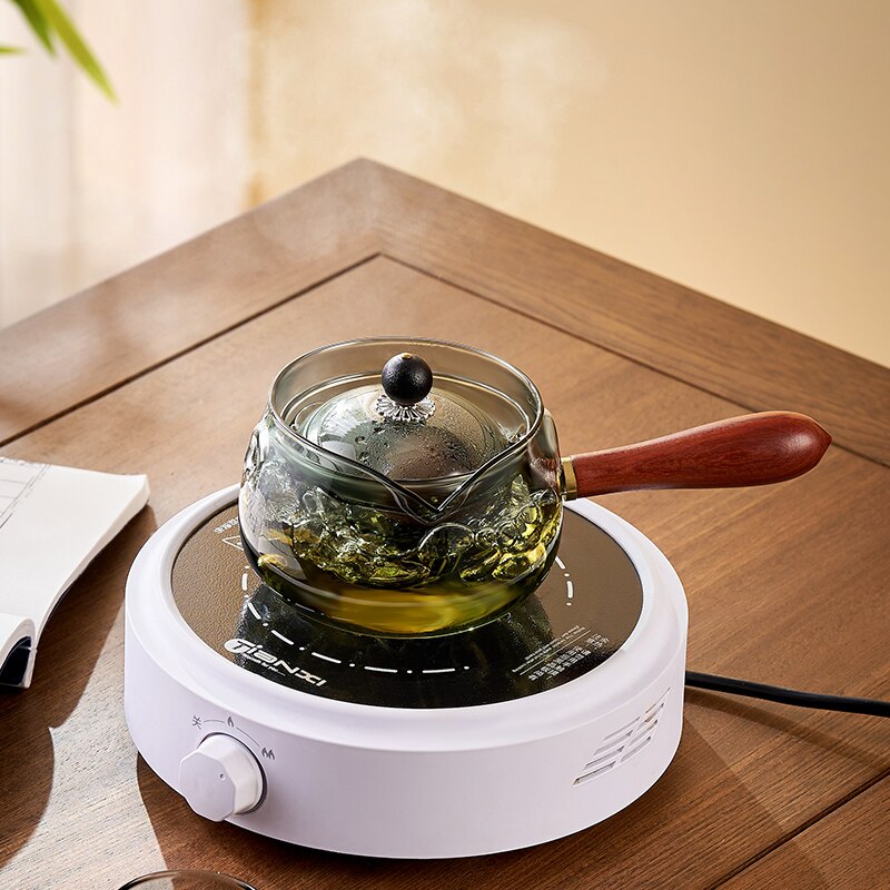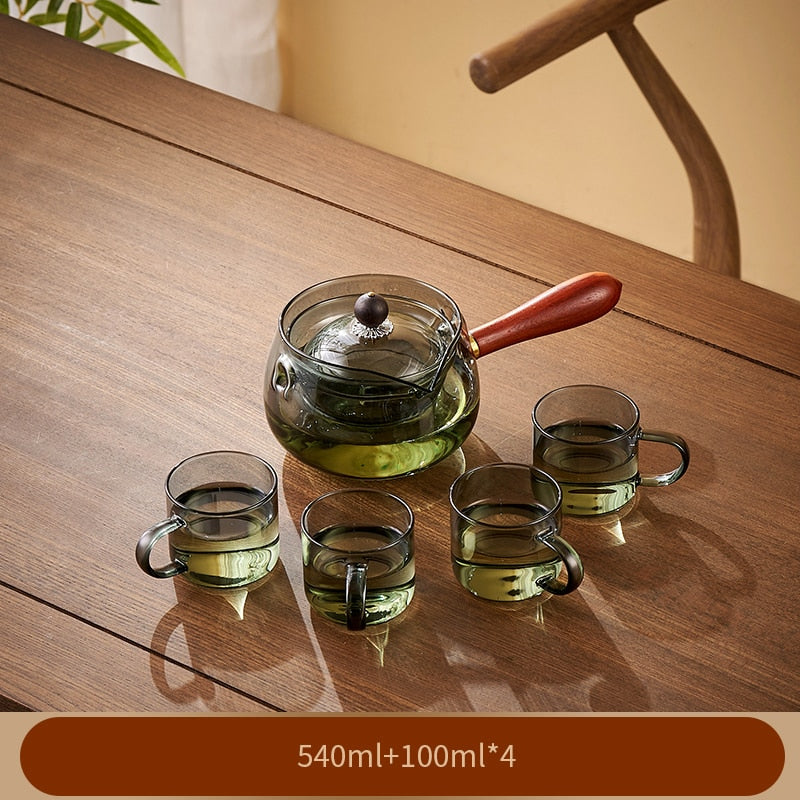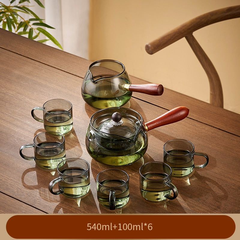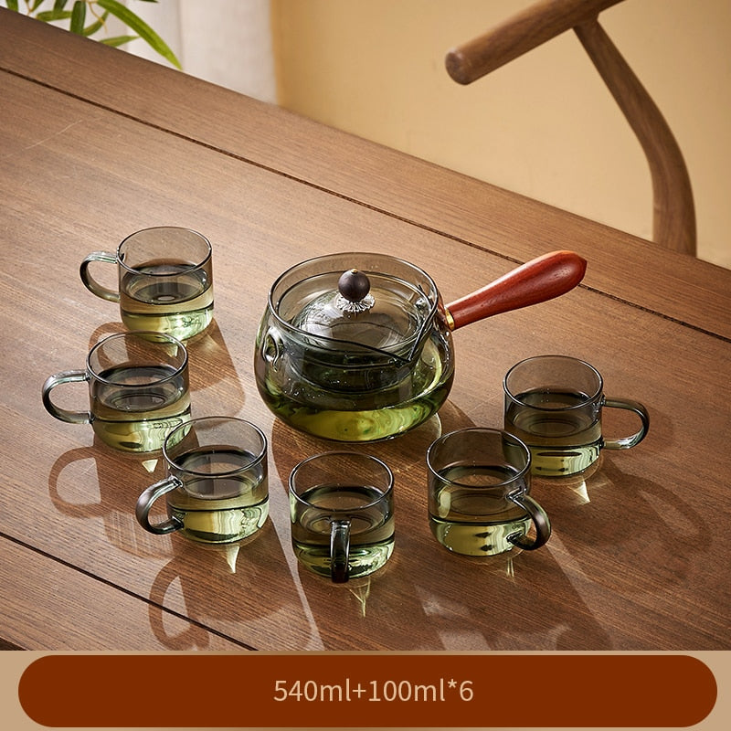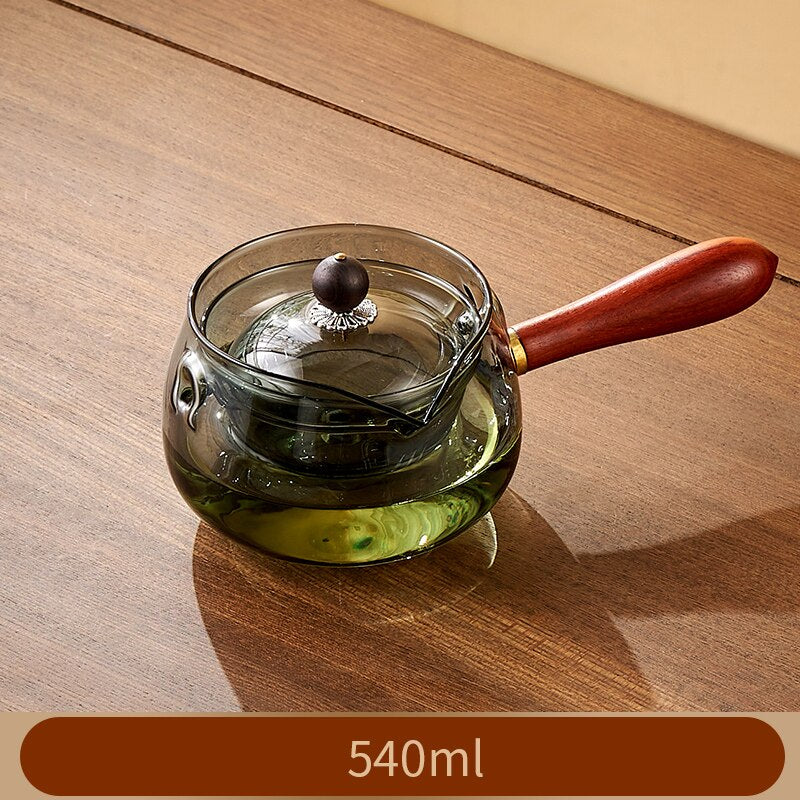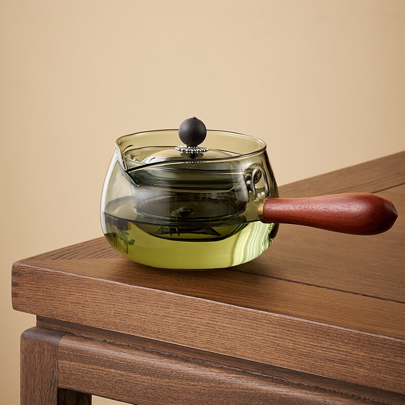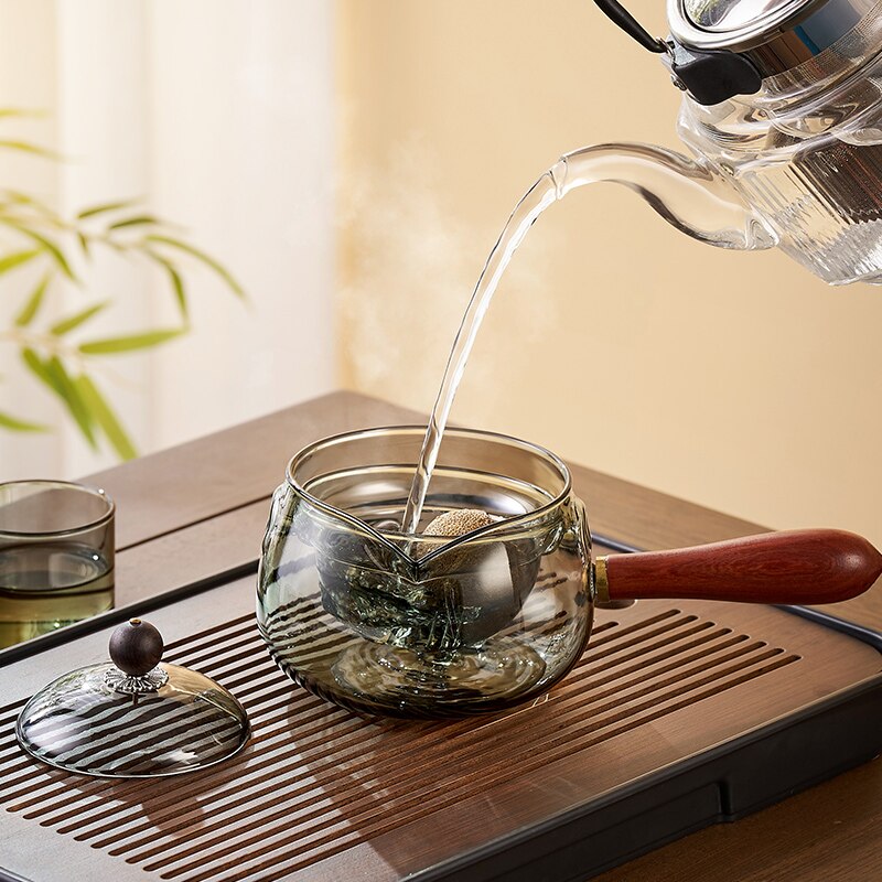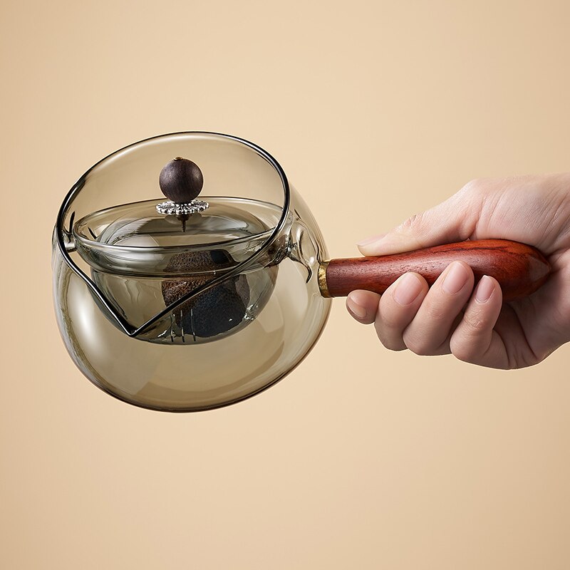 Tetera de vidrio con manejo de madera Ceremonia de té china té puro kung fu