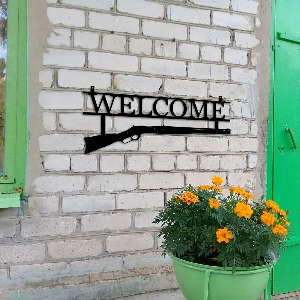 Welcome Sign Home Decor with A Unique Metal Gun Design Sign Hunting Lovers Wall Hanging Decor Metal Wall Mounted Art Livingroom