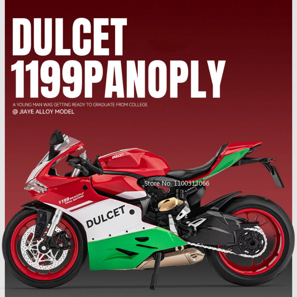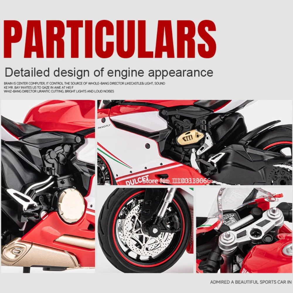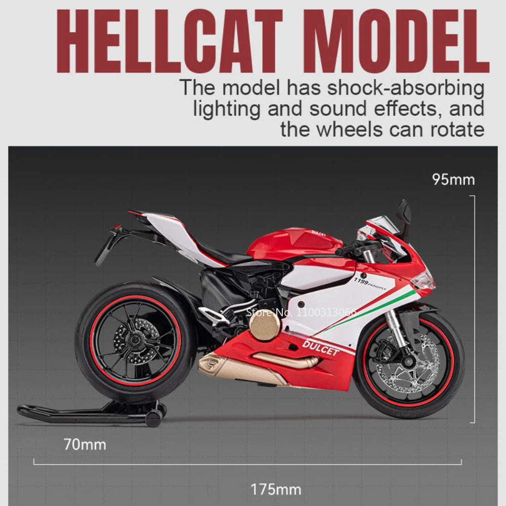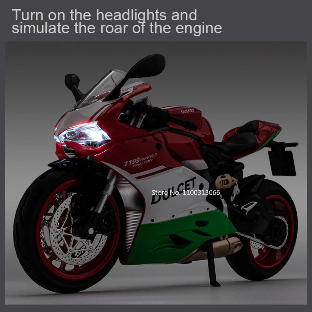 1: 12 Scale Ducati 1199 Motorcyclel Car Model Static Simulation Car Toy Collection with Light Sound Motorcyclel for Kids Gifts