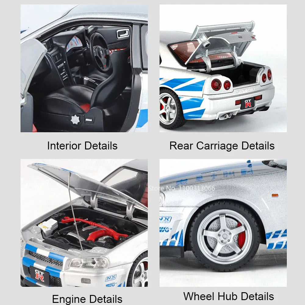 1:18 GTR SKYLINE ONE Toys Sports Cars Alloy Diecast Model Wheel Steering Miniature Vehicles Doors Opened Car for Child Gifts