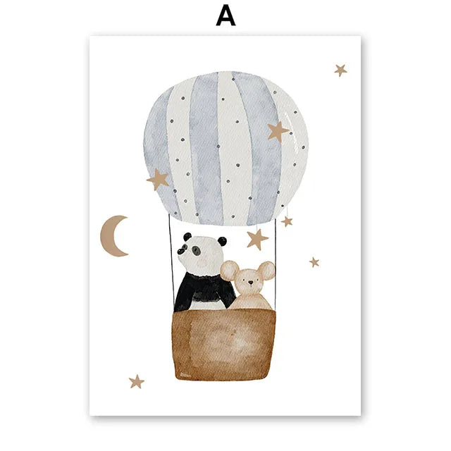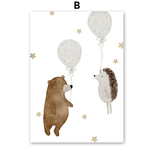 Boho Bear Hedgehog Panda Toucan Car Balloon Wall Art Canvas Painting Cartoon Posters And Prints Pictures Baby Kids Room Decor