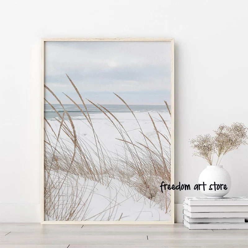 Boho Gallery Style Beach Landscape Photography Pampass Grass Art Poster Canvas Painting Wall Print Picture for Room Home Decor