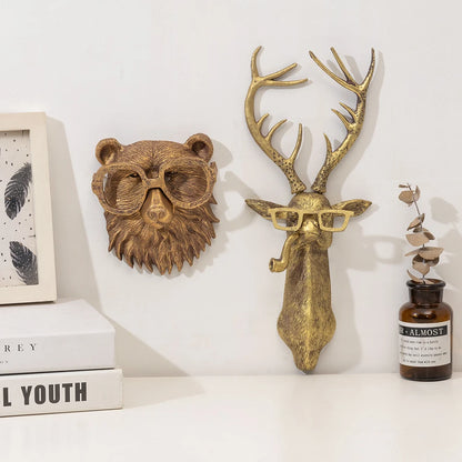 Decor Wall Art Decor Deer Head Wall Hanging Home Decor Bronzed Resin Animal Hanging Sculpture Animal Head Wall Hanging Ornaments