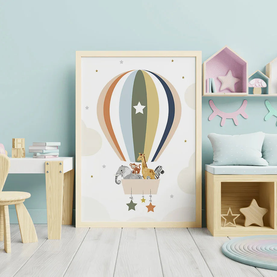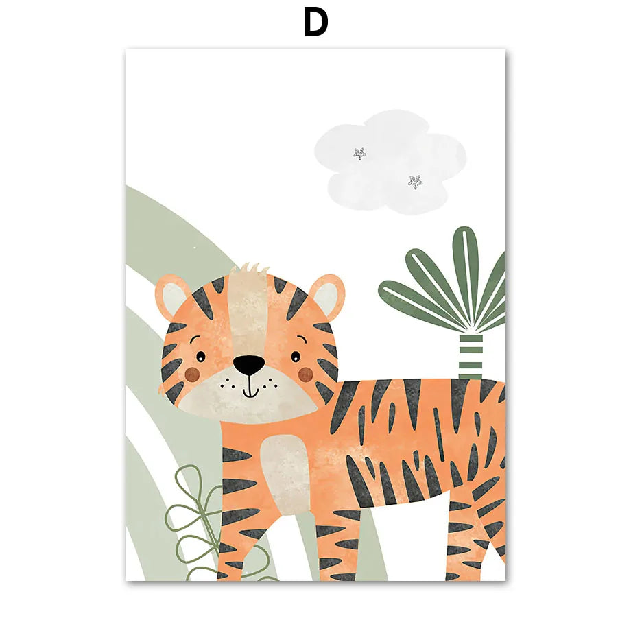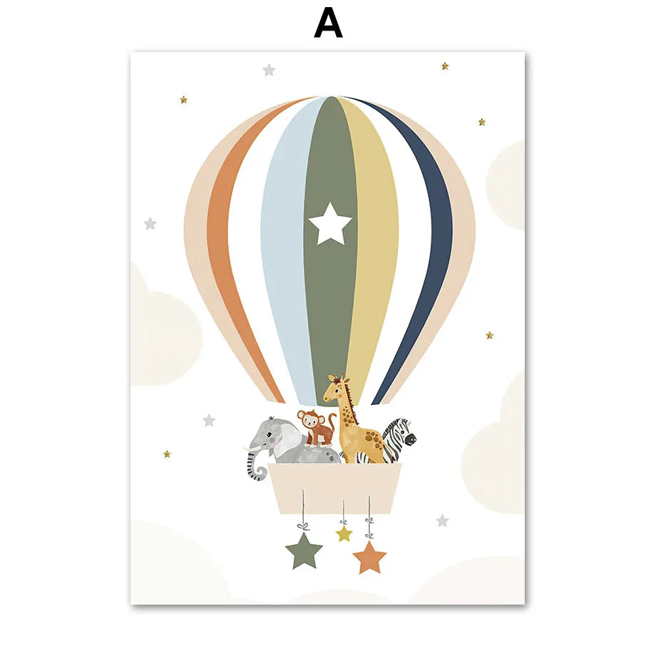 Giraffe Tiger Elephant Rainbow Hot Air Balloon Wall Art Canvas Painting Animals Posters And Prints Pictures Baby Kids Room Decor