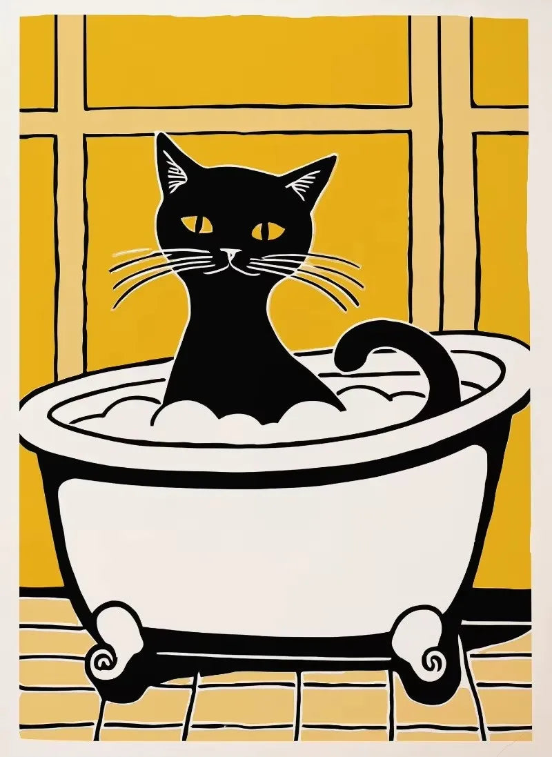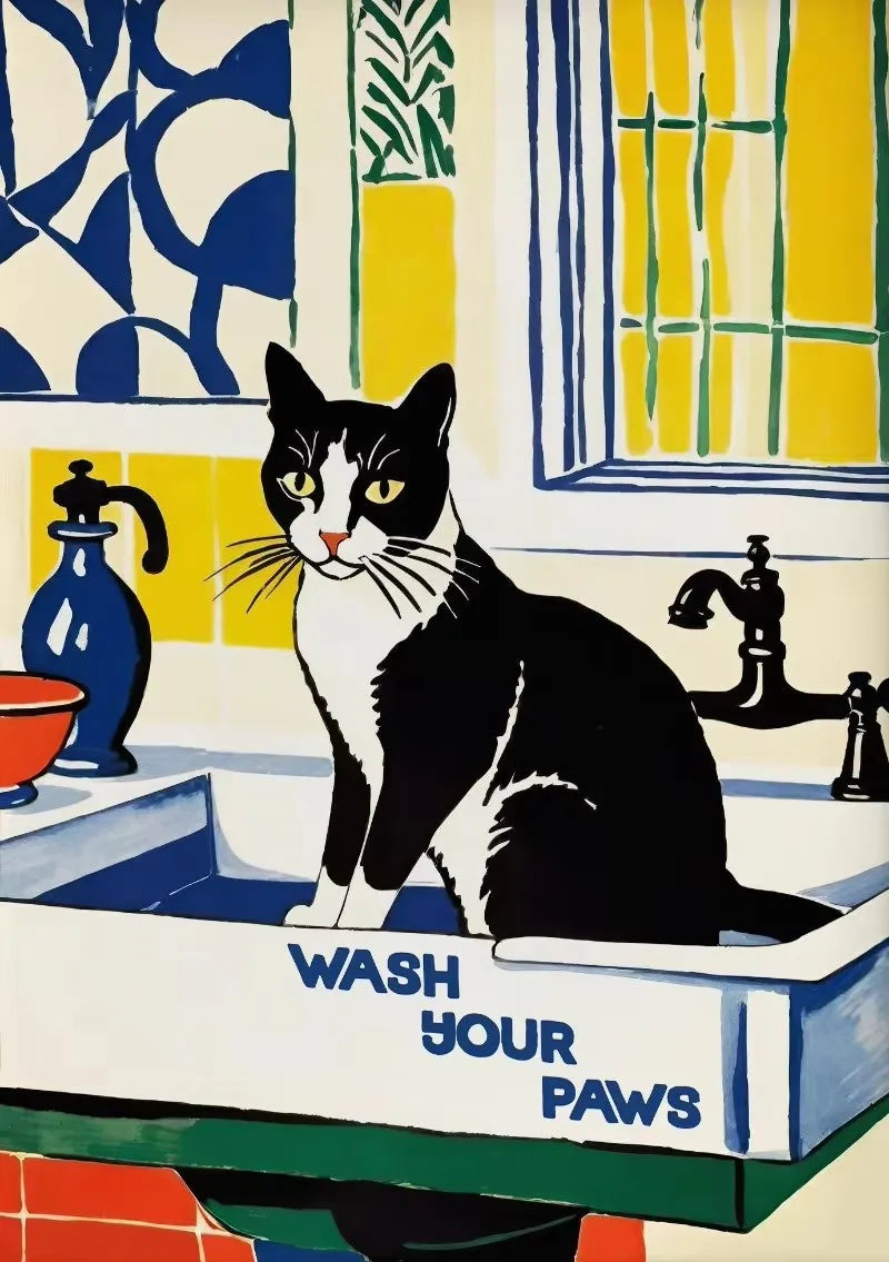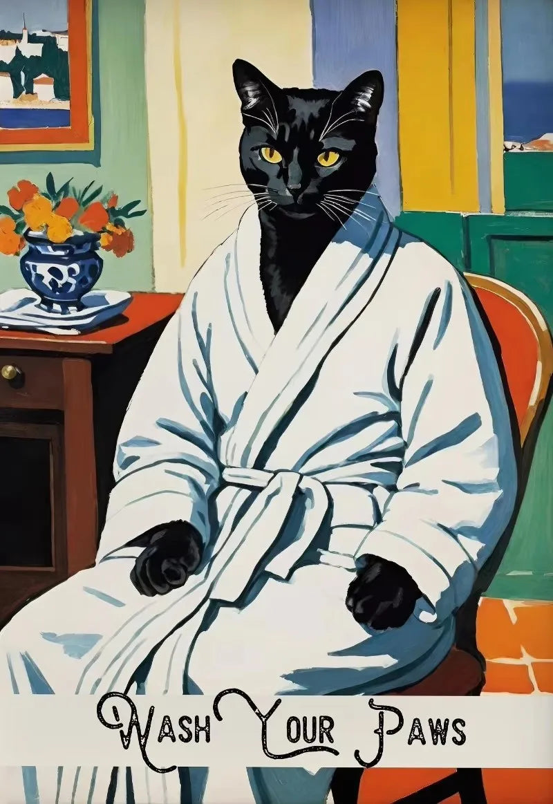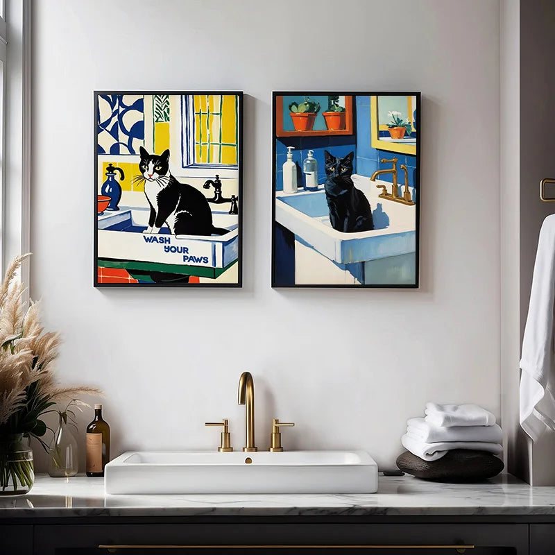 Interesting Animal Bathroom Cat Abstract Art Posters Prints Canvas Painting Wall Art Picture Living Room Home Decor