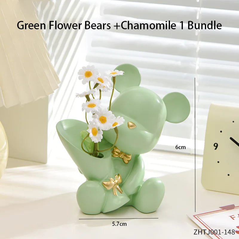 Kawaii Little Bear Hug Flower Series Vase Fashion Little Bear Living Room Desktop Decoration Gift for Friends' Birthday