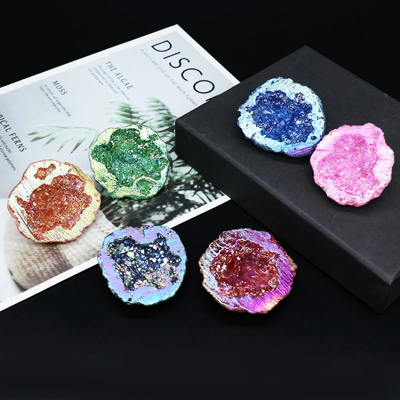 Otsikko:Luonnollinen akaattielektrikaatti värikäs runsautettu reiki parantava raaka kristalli geode -näyte huoneen sisustus energia mineraalikodin sisustus DIY -tarvikkeet
