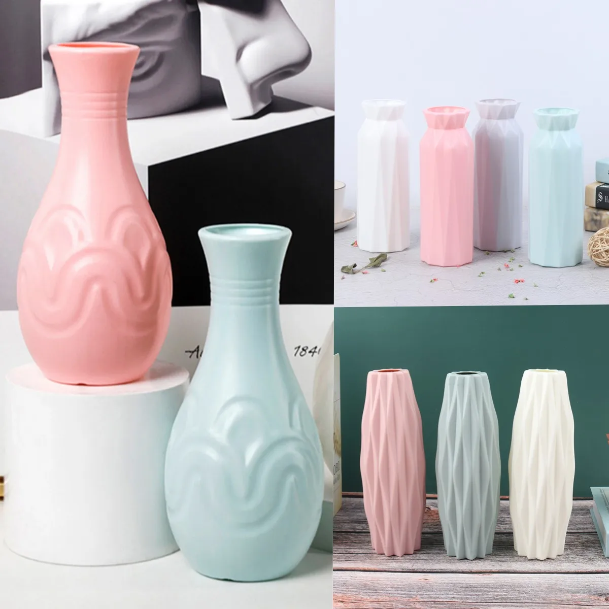 Modern White Pink Blue Plastic Vase Flower Pot Flower Vase Basket Nordic Home Living Room Decoration Ornament Flower Arrangement