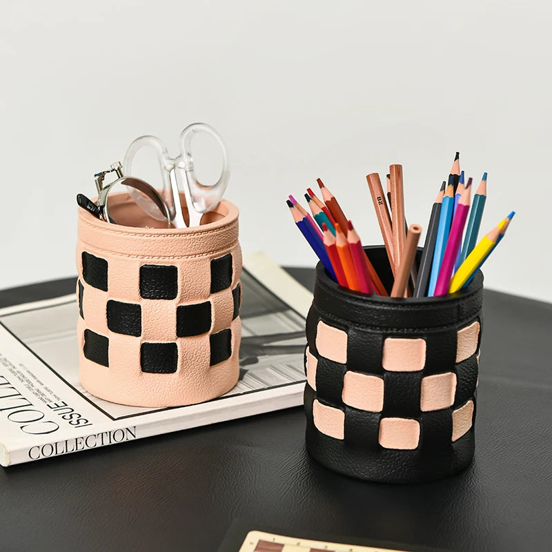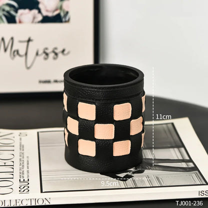 New Creative Simulation Leather Makeup Brush Storage Bucket Pen Holder Multi Functional Pen Holder Office Desktop Decoration