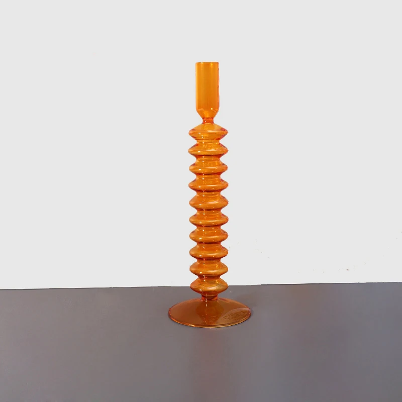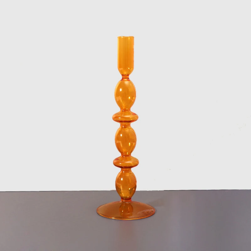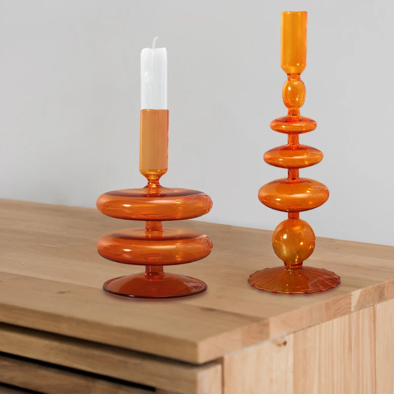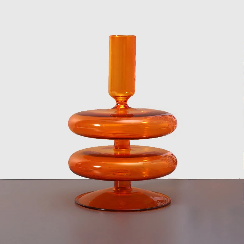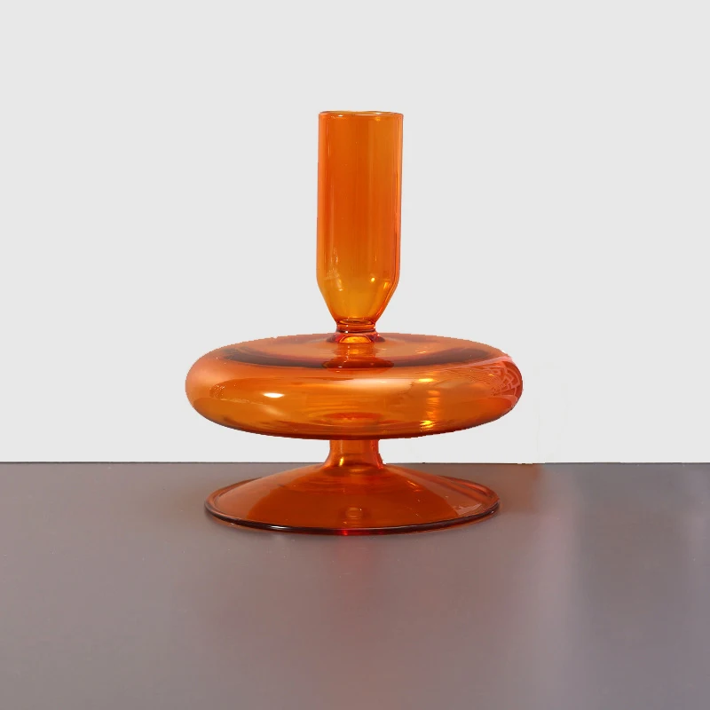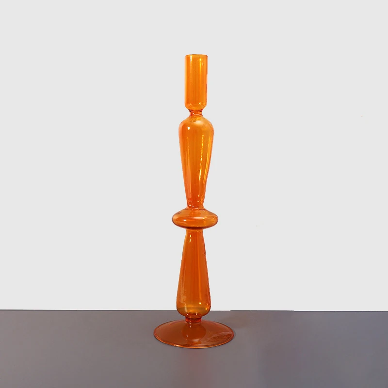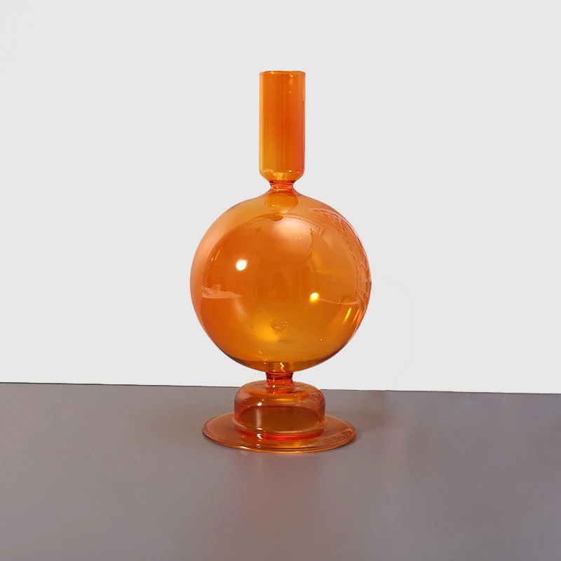 Orange Glass Vases Candle Holders for Wedding Home Flower Vases Decoratio Candlestick Holder Modern Living Room Decor