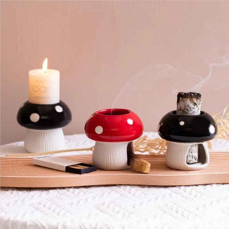Palo Santo Holder Cute Ceramic Mushroom Incense Burner Holder Mini Palo Sage Tray Ash Catcher For Home Decor Meditation Yoga