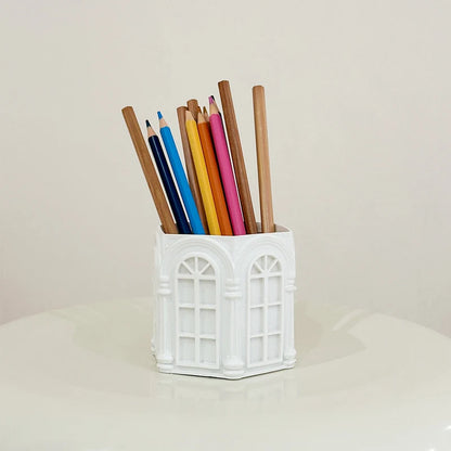 Retro Roman Side House Relief Pen Holder Office Stationery Multi Functional Storage Student Creative Desktop Decoration