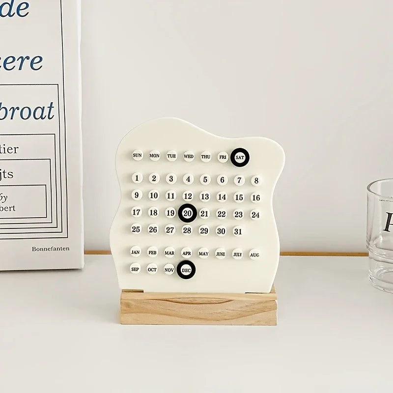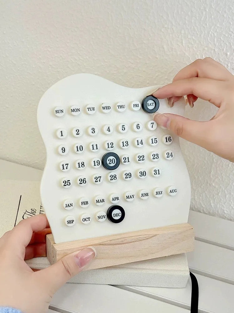 Wooden DIY Cloud Ring Calendar Cute Desk Calendar Adjustable Week Month Date Display Calendar Home Office Desk Decoration