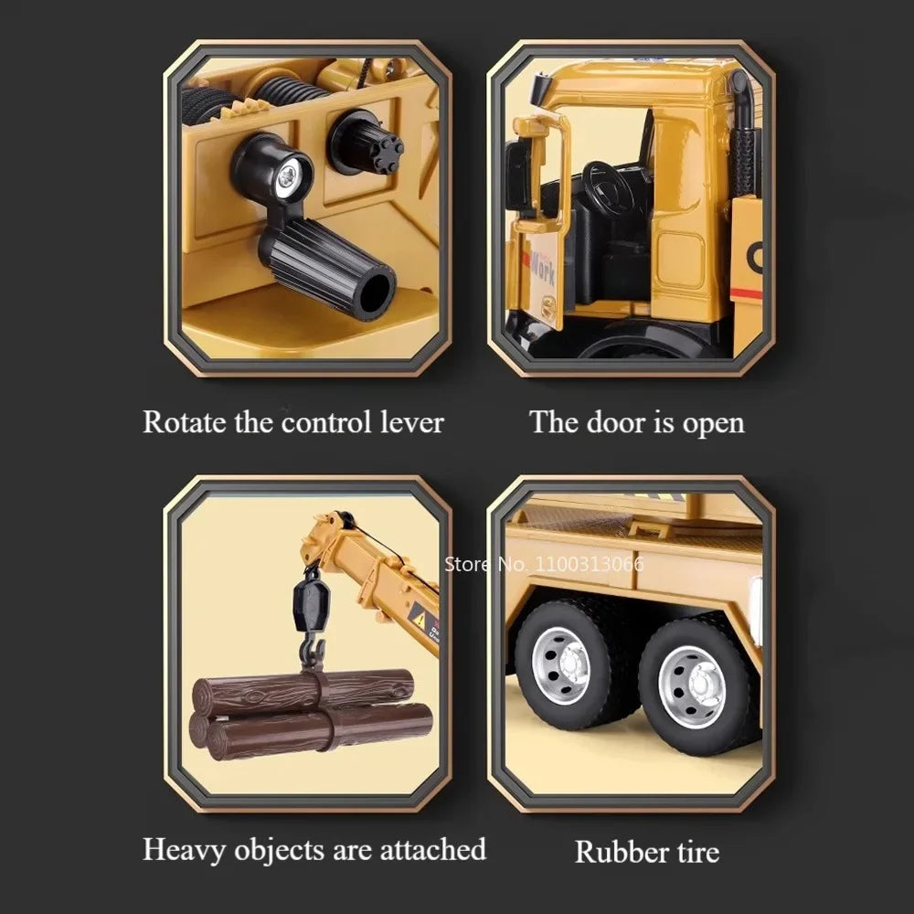 1:18 Metal Diecast Engineering Vehicles Model Toys Rubber Tires with Light&Sound Large Crane Models for Children Education Toy