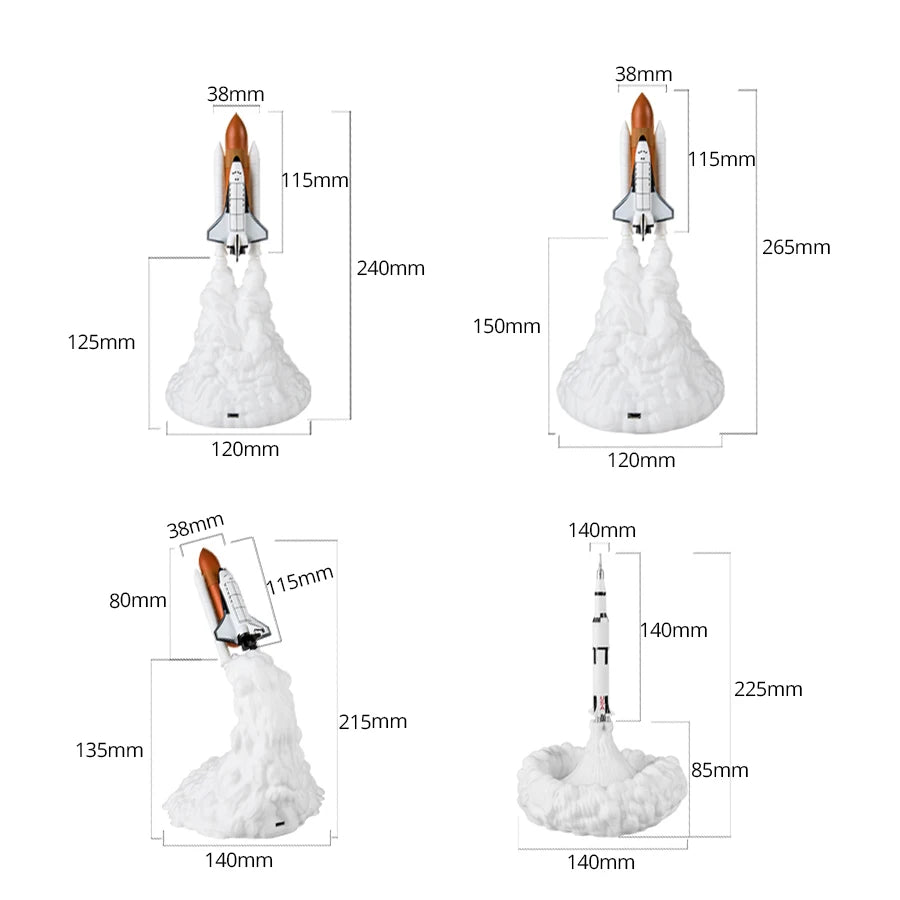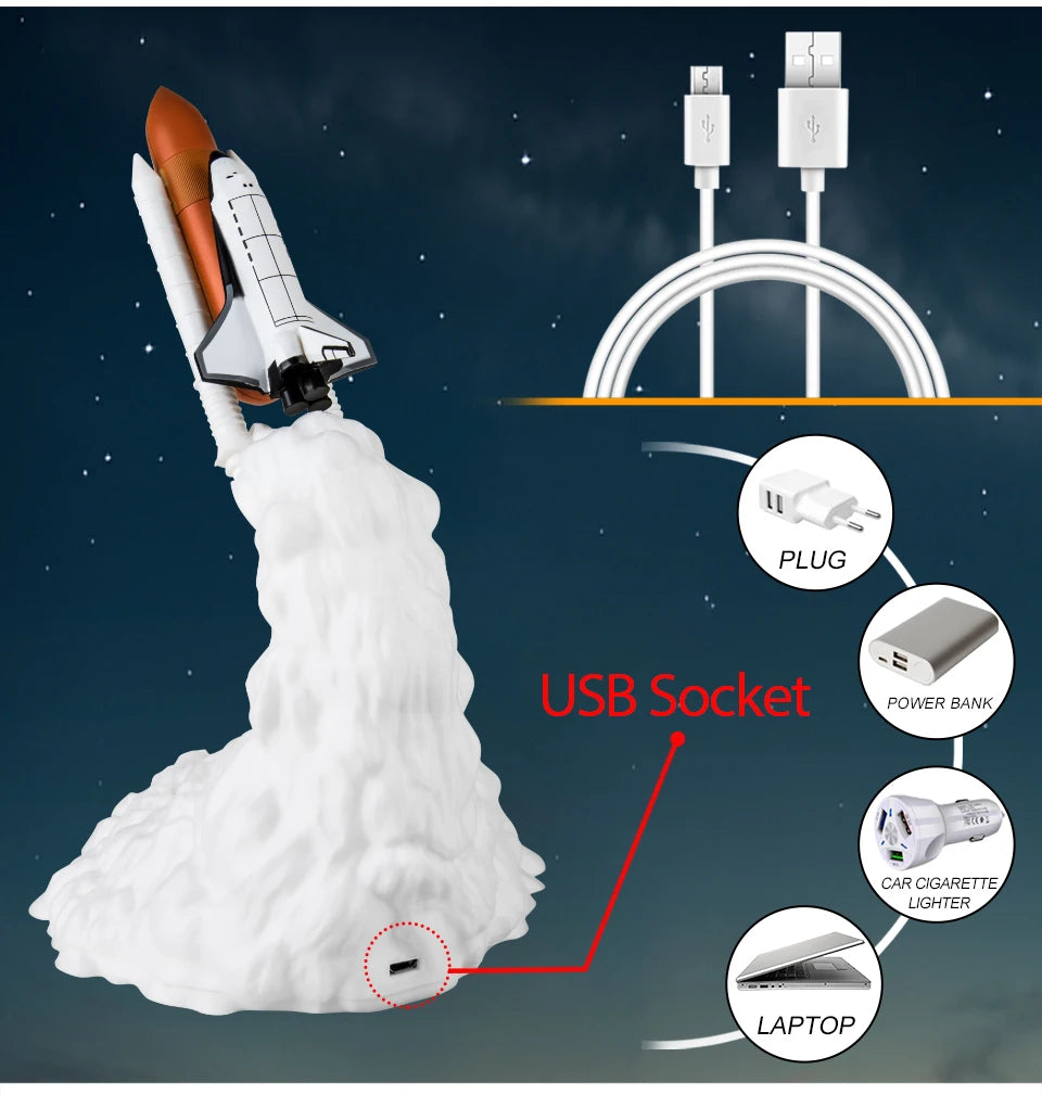 800 mAh 3D Print LED Space Shuttle Lamp Rocket Apollo 5 shuttlecraft USB Rechargeable LED Night Light Bedside Study Desk Decor