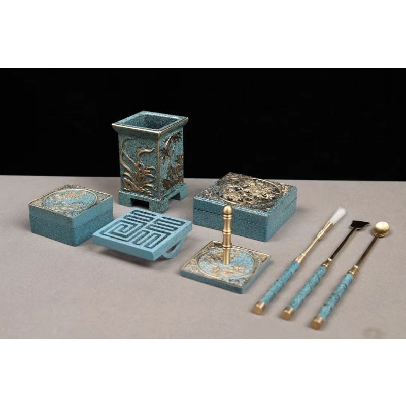 Nom du produit : ensemble d'encens bleu brûlant en cuivre pur.