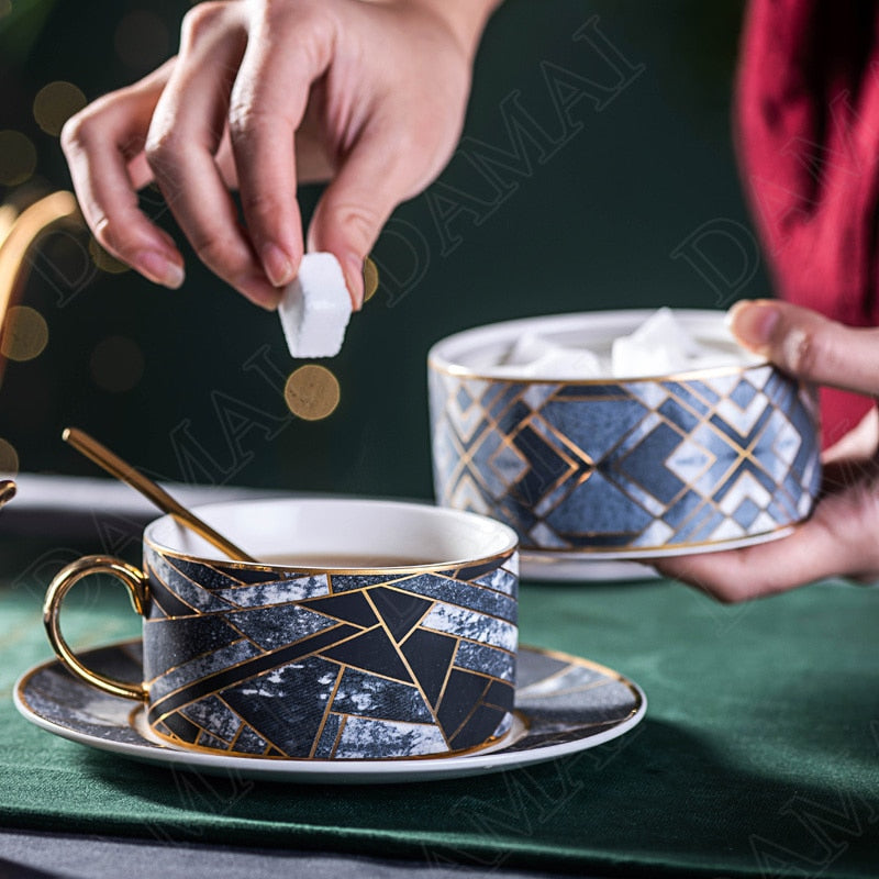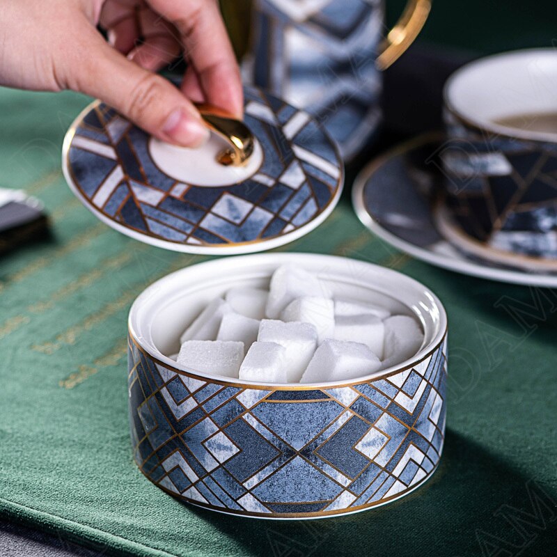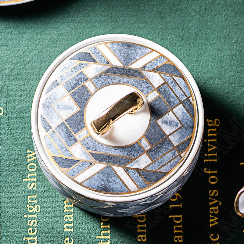Pots de rangement en céramique américains, bol à café et sucre à course dorée, récipient cosmétique pour chambre à coucher, décoration de la maison, organisateur moderne