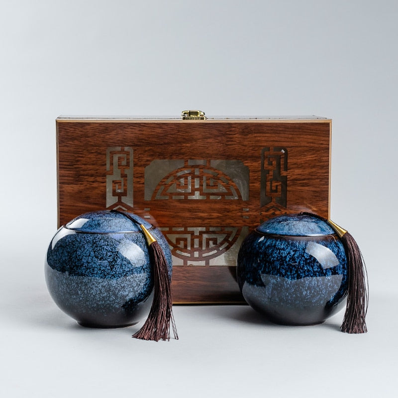 Caddie à thé en céramique, réservoir de stockage, organisateur de thé, pot scellé, pot de bonbons, récipient alimentaire, pot décoratif, boîte à thé, ensemble de 2 pièces, boîte-cadeau