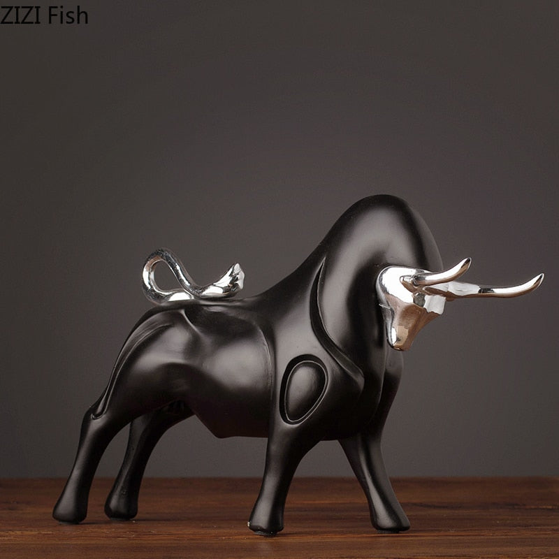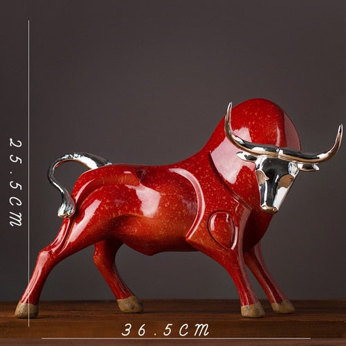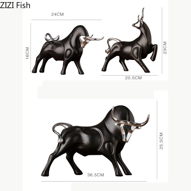 Figurines modernes, Sculpture de taureau rouge et noir, en résine, Simulation d'animal, bibliothèque de salon, accessoires artisanaux, décoration de maison